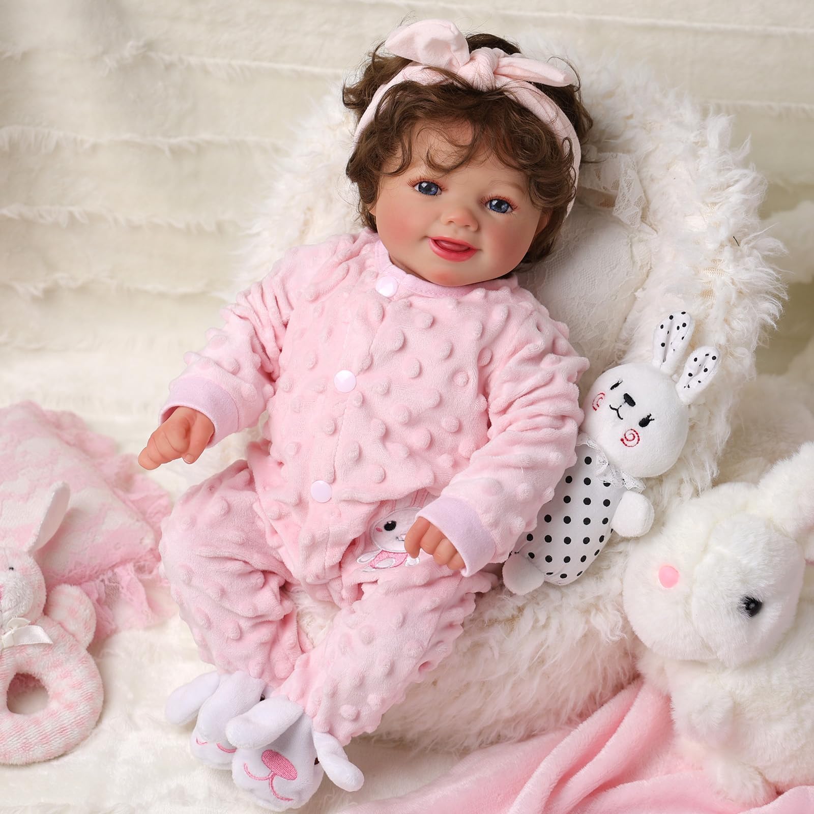 - Presenta dettagli realistici come capelli e ciglia impiantate e dipinte a mano, vasi sanguigni visibili sulla pelle, unghie a mezzaluna, arti in vinile e un corpo in tessuto morbido; misura circa 17 pollici (43 cm) e pesa 1,2 kg.