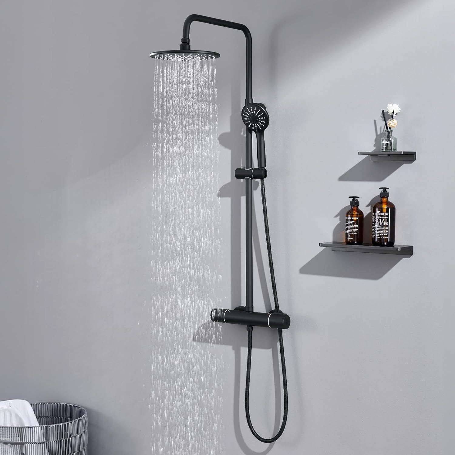 Colonna Doccia con Miscelatore Termostatico, Nero