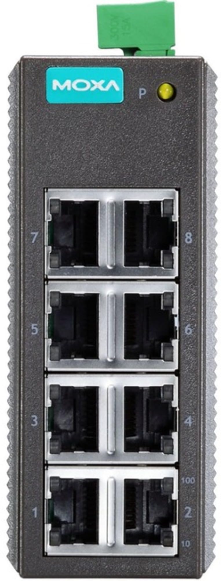 - Lo switch industriale non gestito Moxa EDS-208 dispone di 8 porte 10/100BaseT(X) e supporta gli standard IEEE 802.3/802.3u/802.3x, con porte RJ45 che offrono funzionalità 10/100M, full/half-duplex e auto-sensing MDI/MDIX.