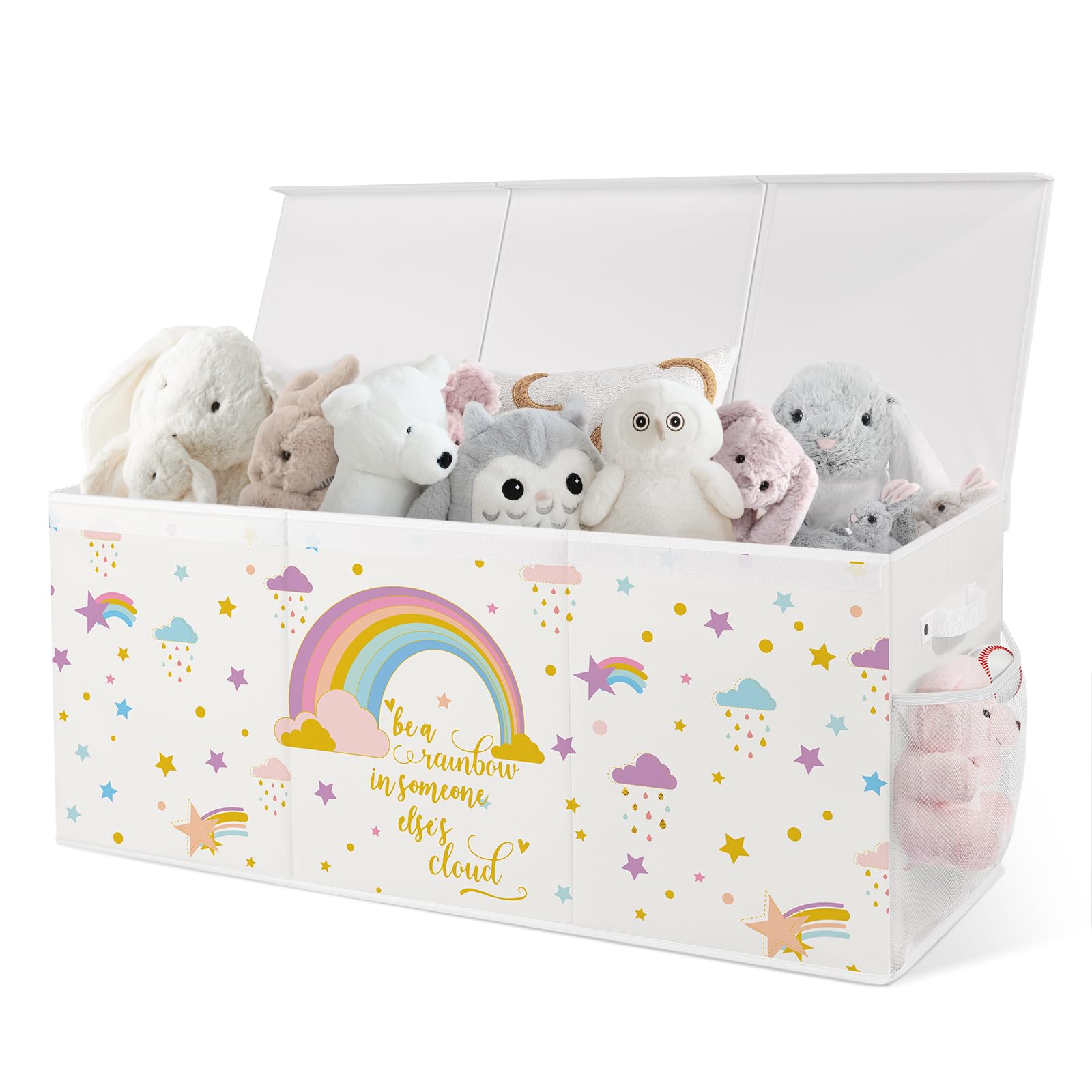 - 【Capacità Extra-large da 124L】- Realizzato in tessuto Oxford impermeabile, 96×32×40 cm, con tasche in rete espandibili su entrambi i lati, può contenere senza problemi grandi quantità di peluche, libri, vestiti e giocattoli.
