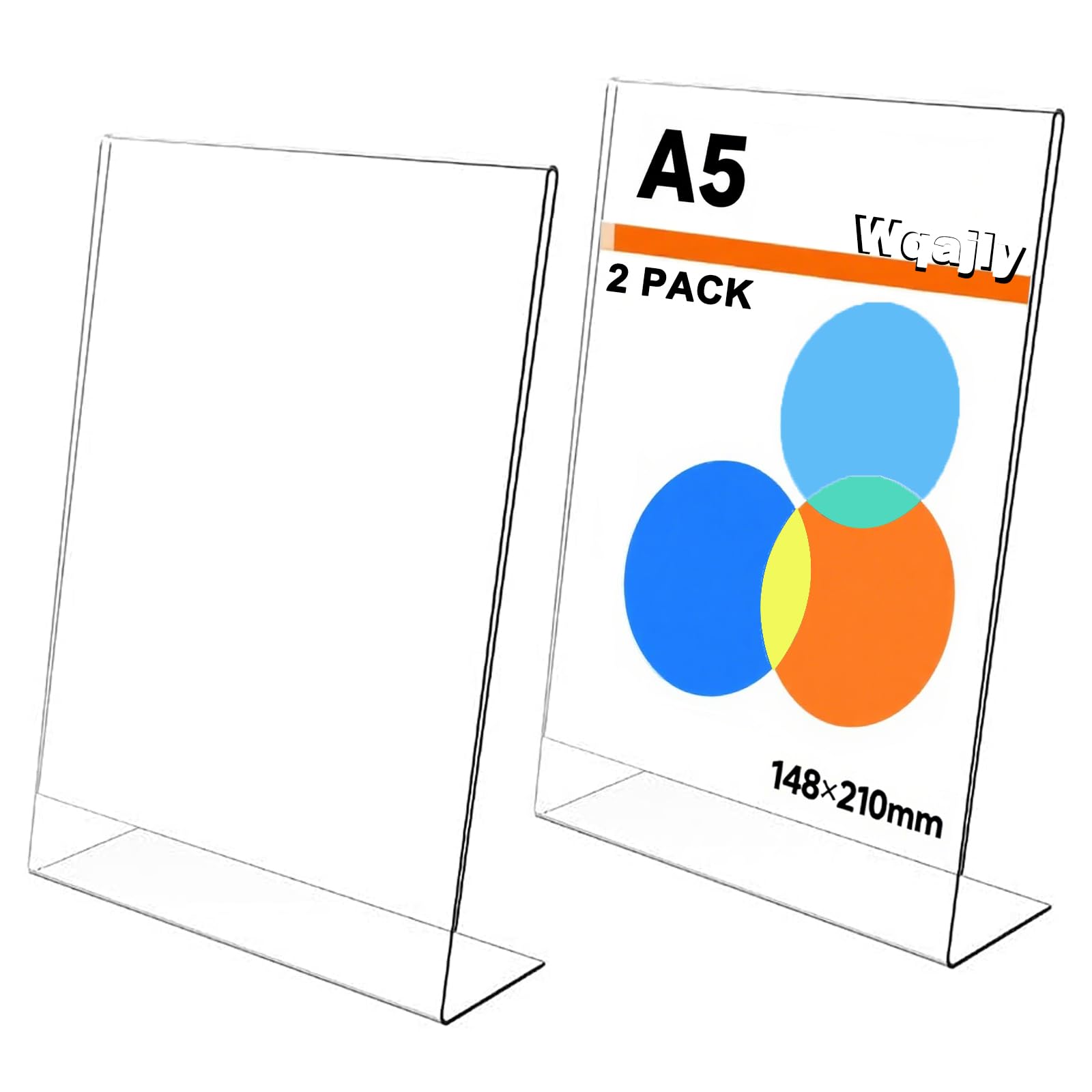 2 Pezzi Espositore Plexiglass A5 - L Forma Trasparente