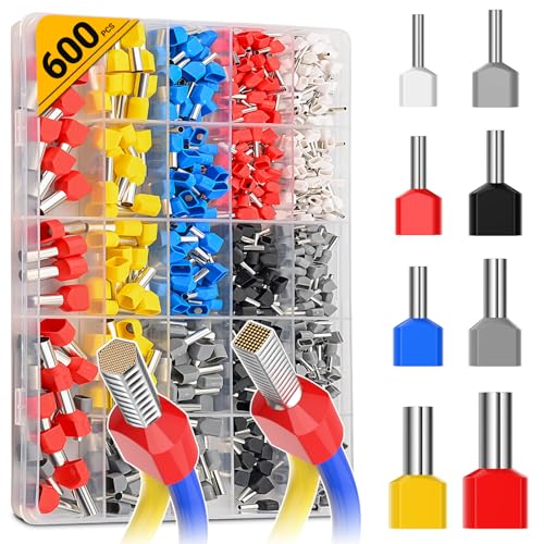 - 【600 terminali a due fili】Contiene 600 terminali a due fili, che possono crimpare due fili su un terminale. Può migliorare efficacemente l'efficienza e ridurre le dimensioni. 6 dimensioni: 2 x 0,5 / 0,75// 1,5/ 2,5/ 4/ 6/10 mm².