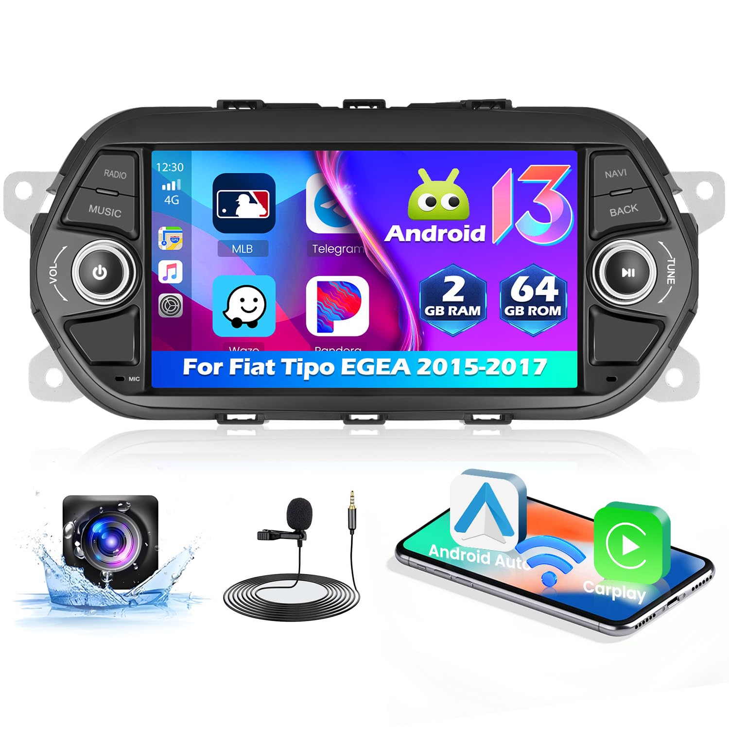 - Tra le altre funzionalità, l'autoradio touchscreen da 9 pollici per Fiat Tipo EGEA offre chiamate Bluetooth in vivavoce, radio FM RDS per stazioni in tempo reale, diverse impostazioni EQ, supporto per i comandi al volante, uscita video e subwoofer, e ingresso video per la telecamera posteriore.