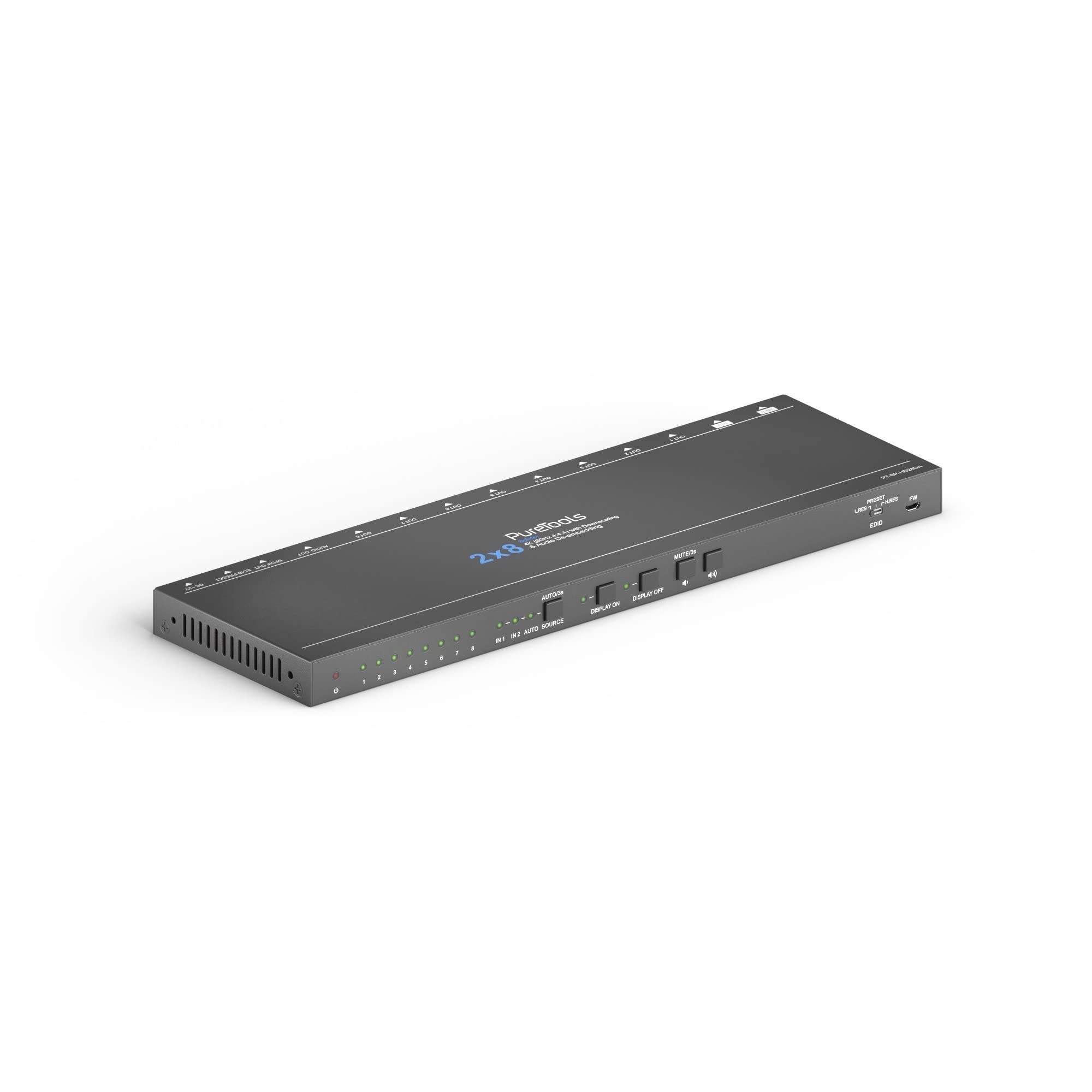 - Splitter puretools sp-hd28da hdmi 2 x 8, 4k (60hz 4: 4: 4) giù-scaling, audio e gestione edid