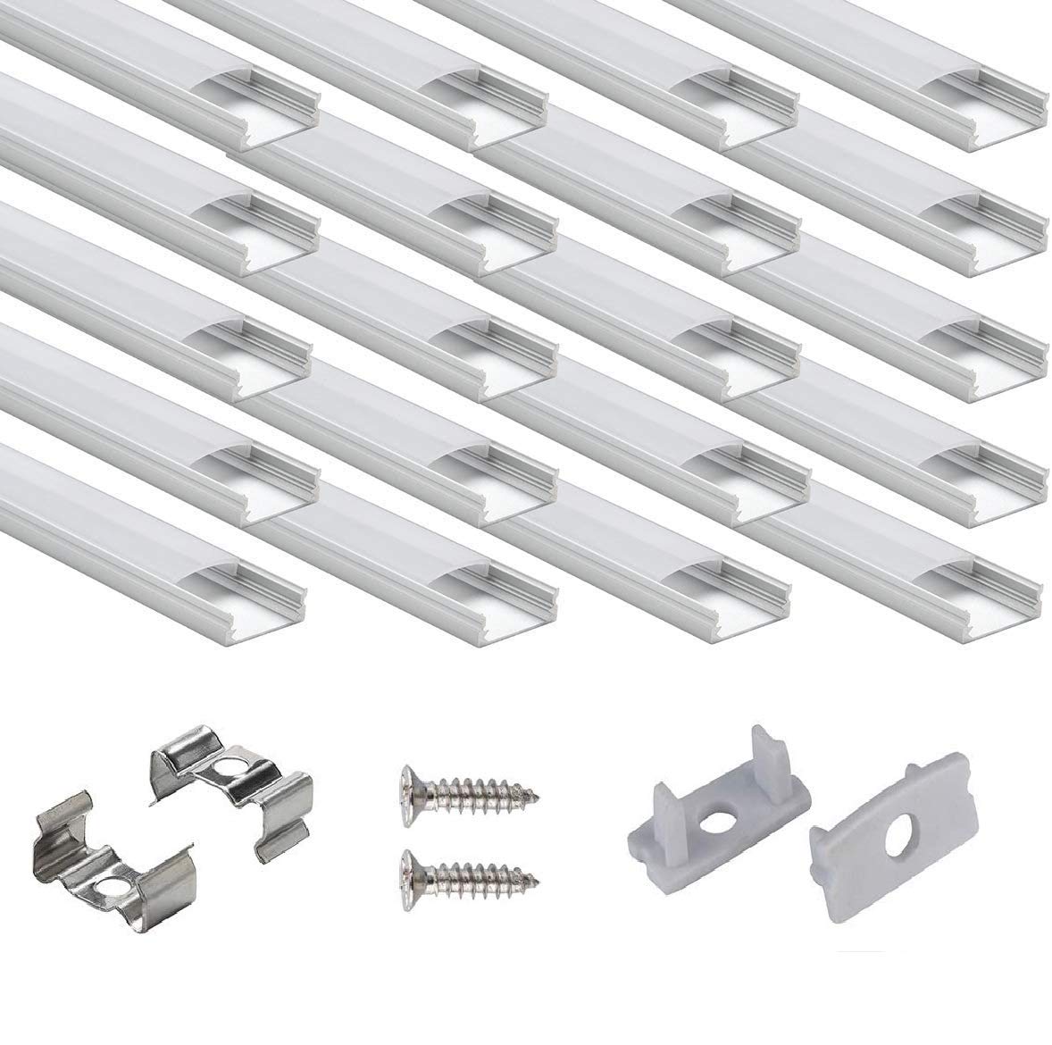 - Questo set include 40 profili in alluminio a forma di U lunghi 1 metro ciascuno, per un totale di 40 metri, completi di 40 coperture in plastica lattiginosa, 80 tappi terminali, 80 clip di montaggio e 80 viti, fornendo accessori sufficienti per l'installazione.