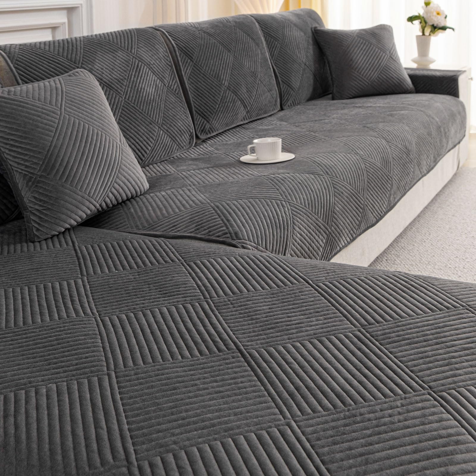 - [Multifunzione e applicazione]: il rivestimento per mobili in velluto protegge il vostro divano, divano, poltrona e sedia da schizzi, macchie e animali domestici. È adatto per tutte le stagioni, non solo per divani, ma anche per tappetini da gioco per bambini e camere da letto, imbottiti, davanzali ecc. Una scelta intelligente per la tua casa