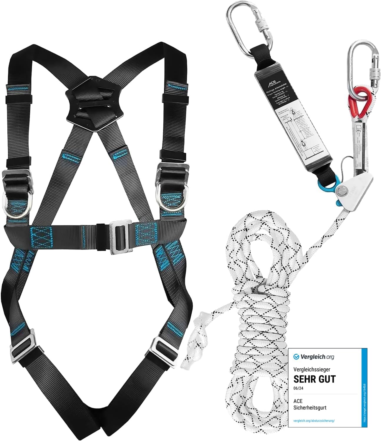 - Questo set completo include un'imbracatura di sicurezza a 1 punto e un dispositivo di raccolta con una lunghezza di 10 metri, ideale per lavori verticali come quelli su tetti e scale.