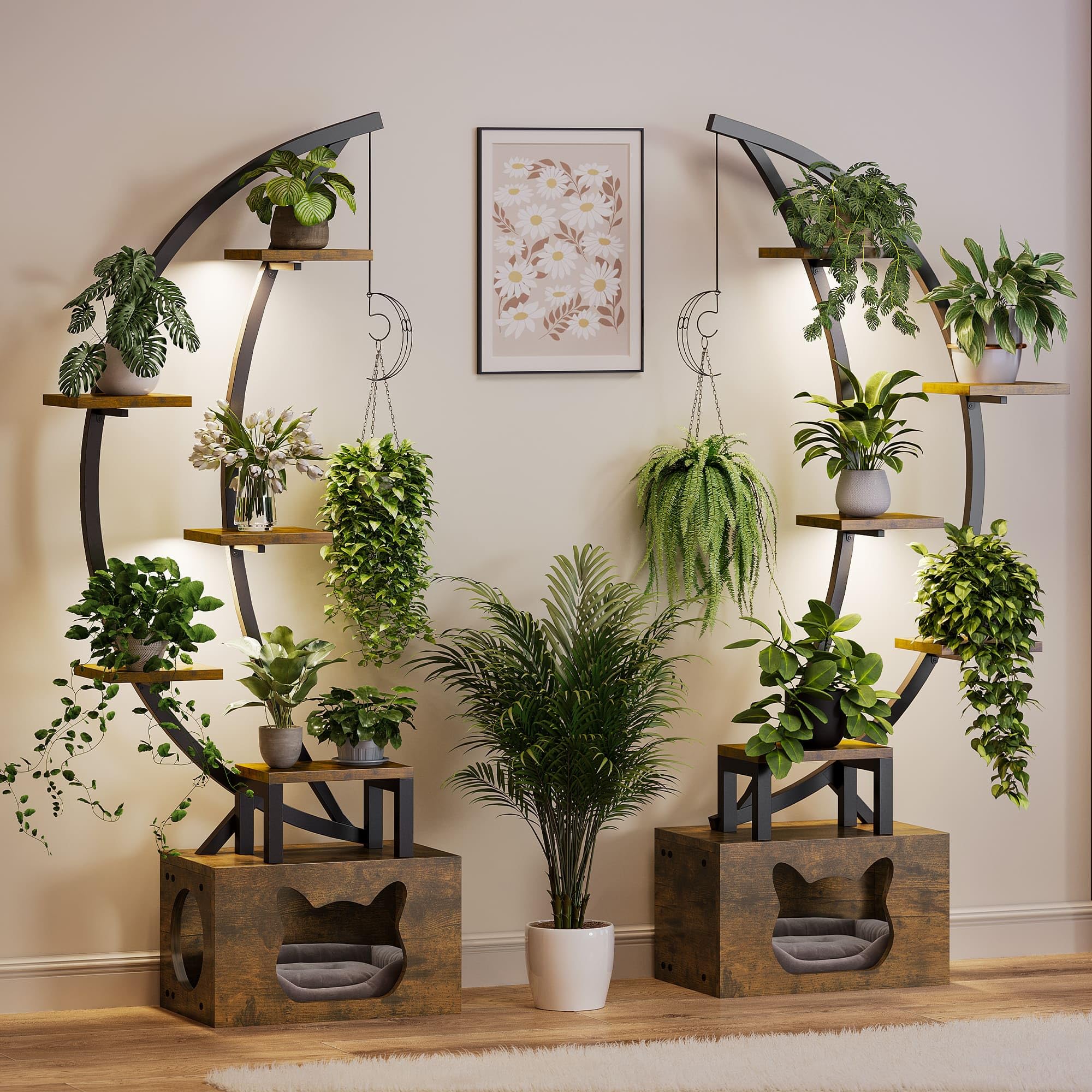 - Design integrato: nella parte inferiore del supporto si trova un letto separato per gatti che offre ai gatti un luogo di riposo separato mentre vengono presentate le piante. Questo design salvaspazio ti consente di vedere i tuoi amati gatti e belle piante a colpo d'occhio.