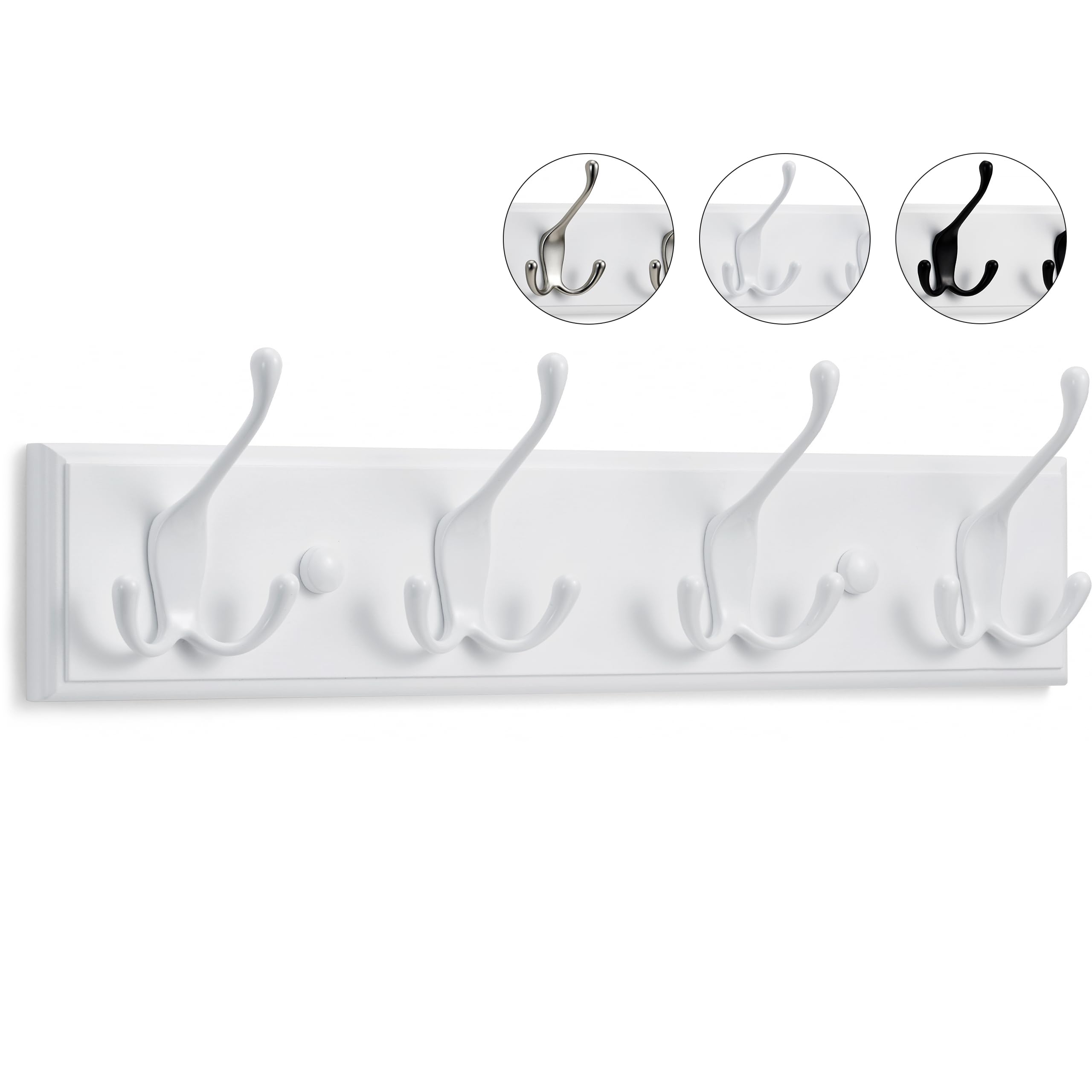 Larhn Appendiabiti da Parete Bianco 4 Ganci Tripli