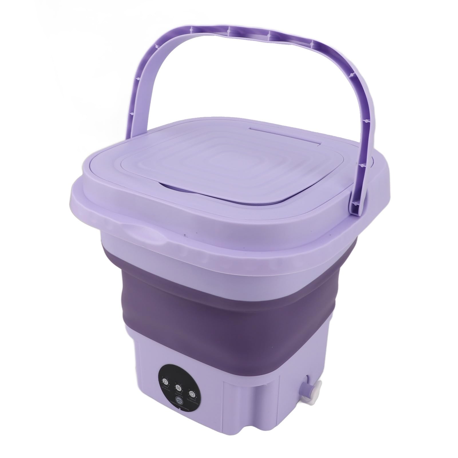 - Questa mini lavatrice pieghevole offre cicli di lavaggio automatici con opzioni timer da 2, 10 e 15 minuti, ideali per diverse esigenze di pulizia. Per risultati ottimali, si consiglia di riempire la lavatrice con due terzi d'acqua.