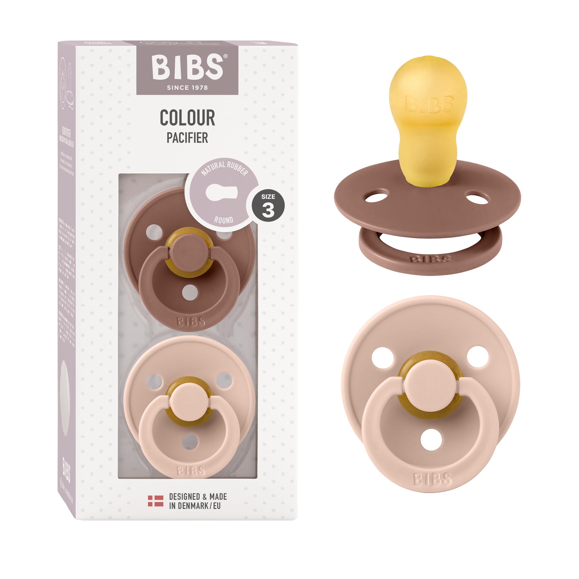 - BIBS Colour è il succhiotto originale caratterizzato da una mascherina e una tettarella tonde. La forma della tettarella e la leggerezza della mascherina opaca sono studiate per ricreare la sensazione del seno materno.