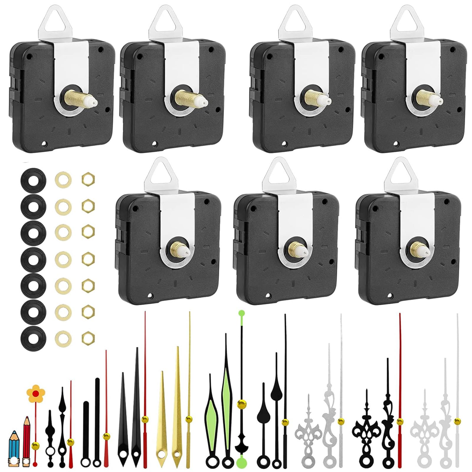 - Kit di movimenti: i kit di meccanismi per orologi contengono 7 movimenti al quarzo in 3 misure (albero da 13/15/22 mm), 10 diversi tipi di lancette, 7 guarnizioni, 7 ganci per appenderlo, quindi è ideale per creazioni e riparazioni di orologi e allo stesso tempo fornisce un effetto decorativo.