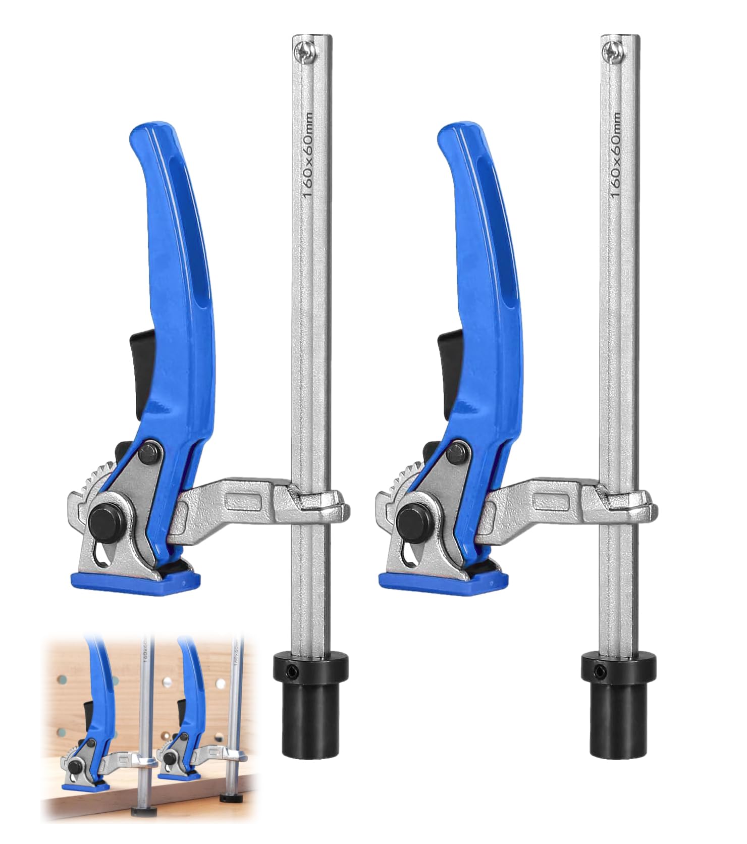 - 【Specifiche】 2 pezzi Morsetti a leva con un campo di serraggio massimo di 160 mm, una profondità di carico di 60 mm e un diametro della base di 20 mm. Ha un'elasticità fino a 500 N ed è adatto per banchi da lavoro multifunzione con un diametro di 20 mm e uno spessore del pannello di almeno 19 mm.