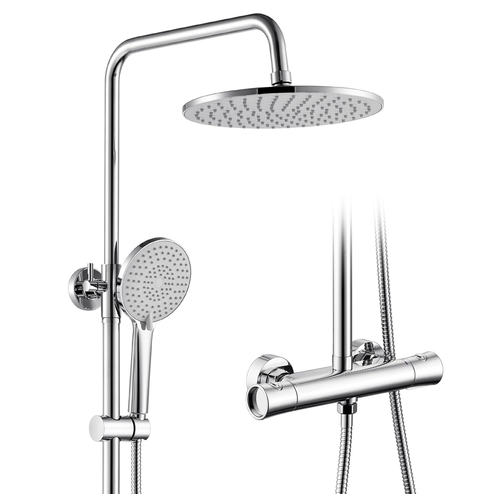 - 2 OPZIONI DIVERSE: Set doccia è dotata di un soffione da 25*25cm e di una doccetta 3 getti. Ruotando leggermente la manopola, è possibile passare liberamente tra le due modalità di distribuzione dell'acqua. Le doccette sono dotate di un sistema anti-calcificazione, che si pulisce strofinando le particelle di silicone con le mani per garantire prestazioni durature.