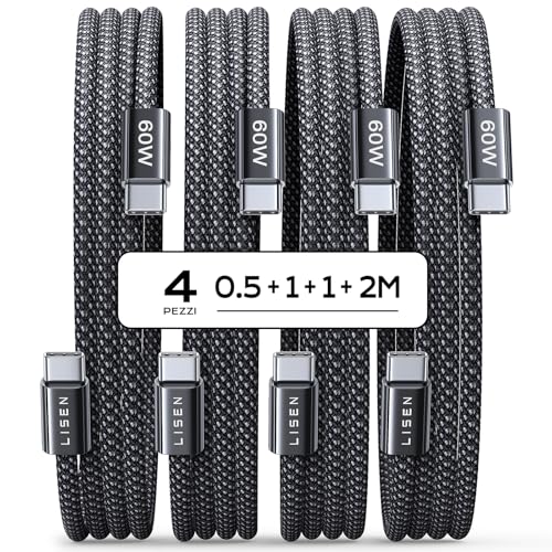 Lisen Cavo USB Type-C Ricarica Rapida 60W, 4 Pezzi