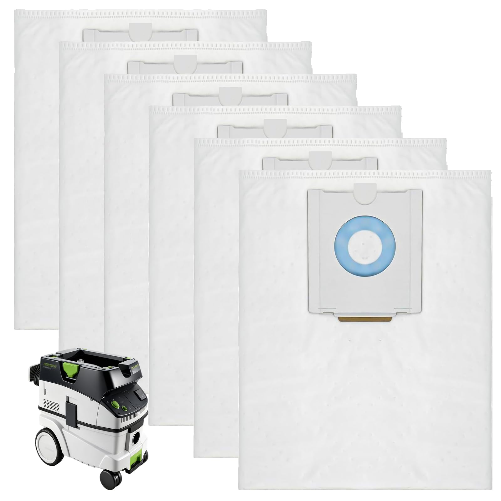 - Sacchetti di ricambio appositamente sviluppati per aspirapolvere: questo sacchetto per aspirapolvere in microfibra per Festool Set contiene sei sacchetti per aspirapolvere ad alta capacità. Grazie alla loro eccezionale capacità di raccolta della polvere, consentono un'efficace aspirazione della polvere fino a 90 giorni, riducendo notevolmente la frequenza di sostituzione. Dimensioni imballo del prodotto: 80 cm x 63 cm.
