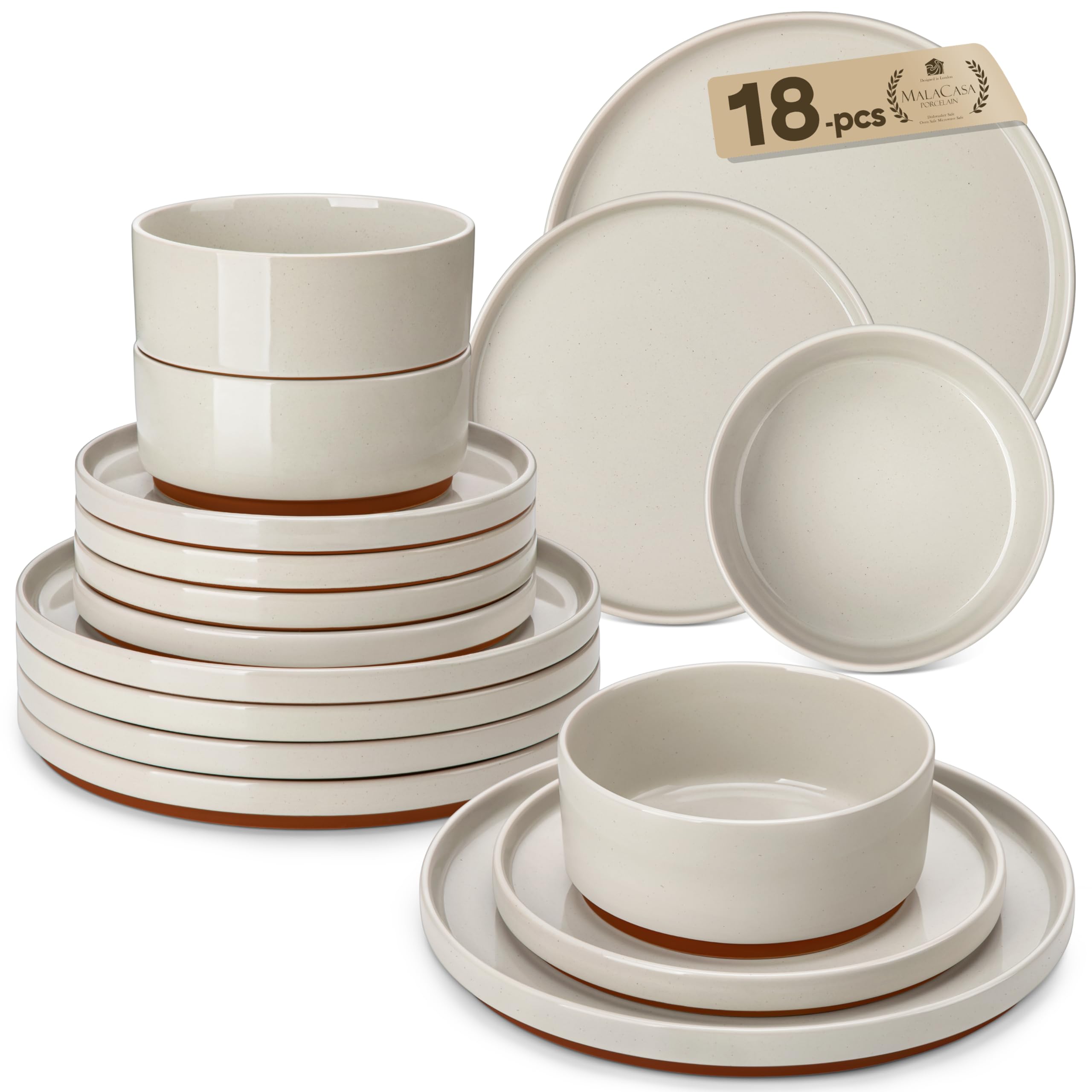 - RICEVERETE: il servizio piatti 18 pezzi in gres MALACASA comprende 6 piatti piani (Ø 26 cm), 6 piatti da dessert (Ø 21 cm) e 6 ciotole per cereali (780 ml). Questo piatti set soddisfa tutte le vostre esigenze per pasti eleganti e uso quotidiano, rendendolo la scelta ideale per riunioni di famiglia o momenti tra amici.