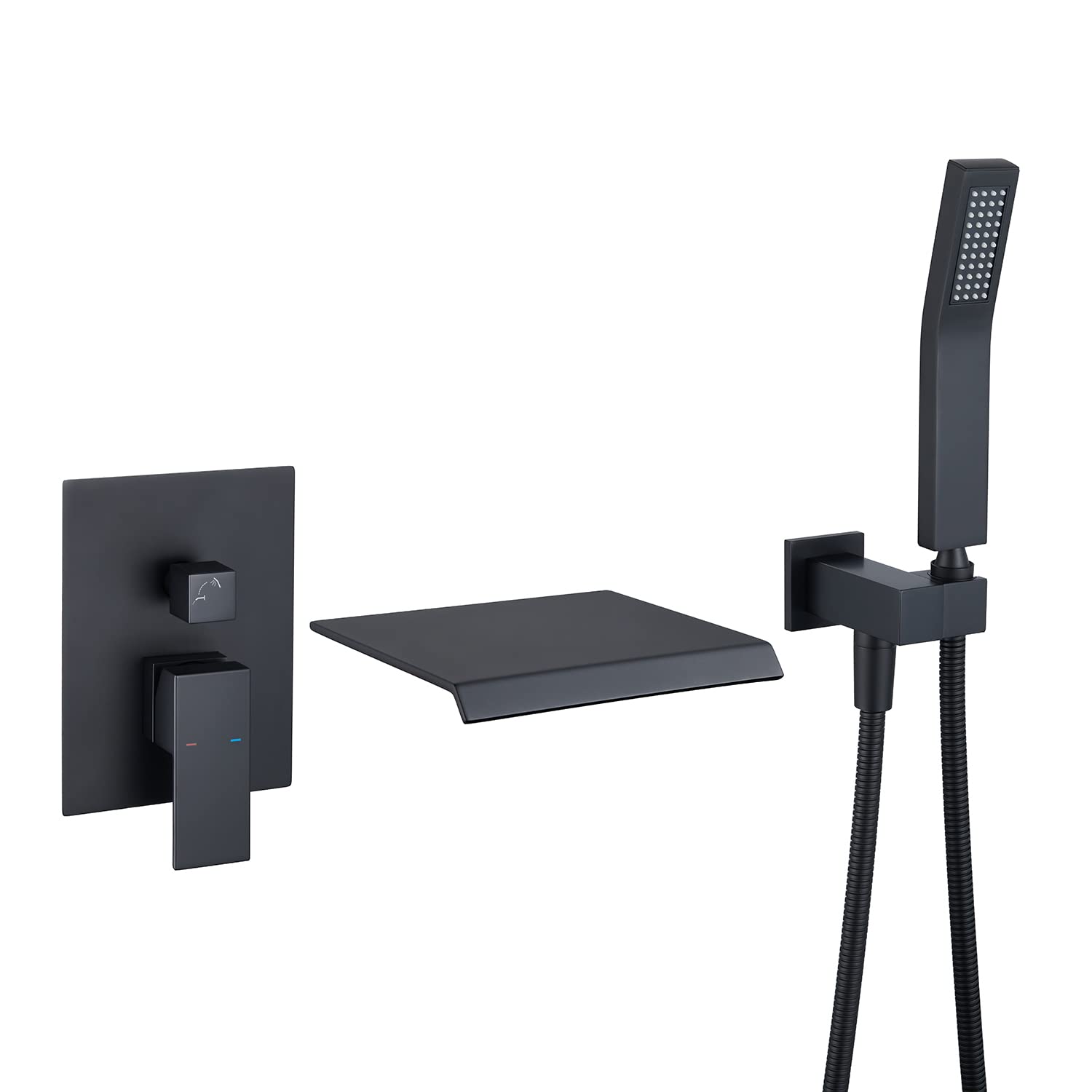 Rubinetto per Vasca a Cascata Nero con Doccetta