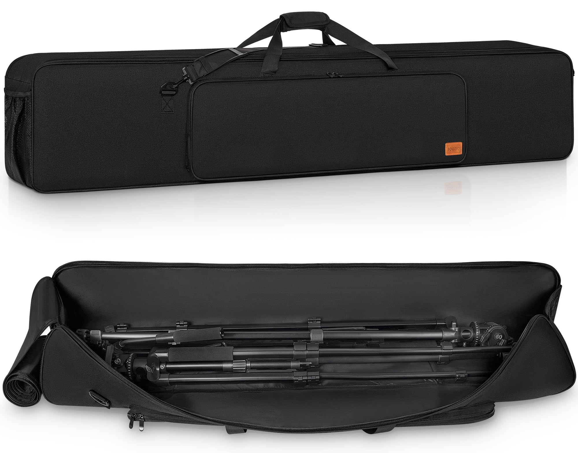 - Versatilità: la borsa per treppiede è ideale per diversi usi come shooting all'aperto e al chiuso, viaggi fotografici e molto altro ancora. È adatta per trasportare treppiedi luminosi, treppiedi per altoparlanti, treppiedi per fotocamera, tangenti audio e treppiedi per microfono: un accessorio estremamente pratico e versatile.