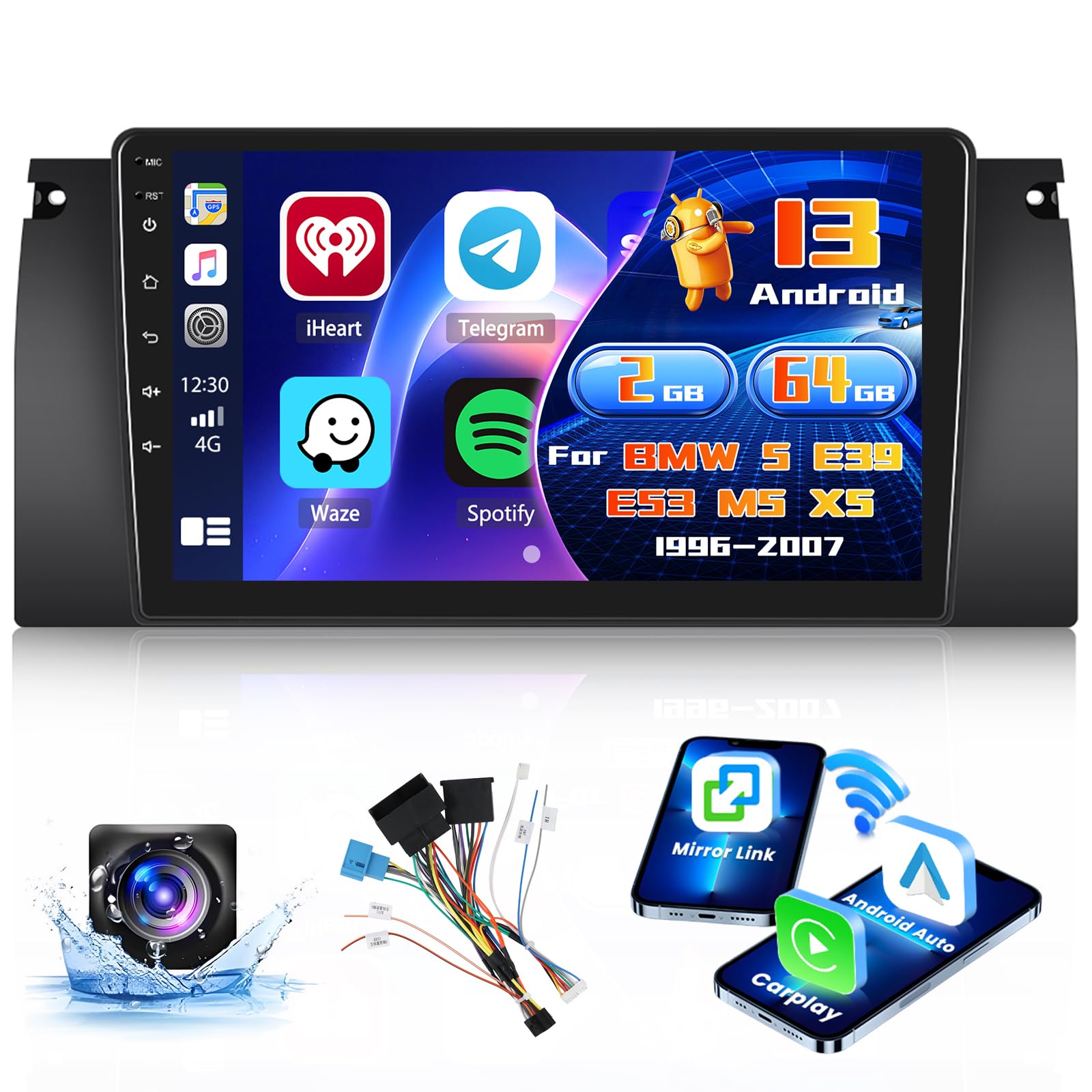 - 2GB+64GB & Sistema Android: Con 2+64GB, la radio per BMW 5 ha una memoria più potente e uno spazio di archiviazione stabile, e puoi scaricare più file di cui hai bisogno. Android 13 è l’ultimo sistema operativo, le app possono funzionare senza problemi, portare un’esperienza di utilizzo migliore
