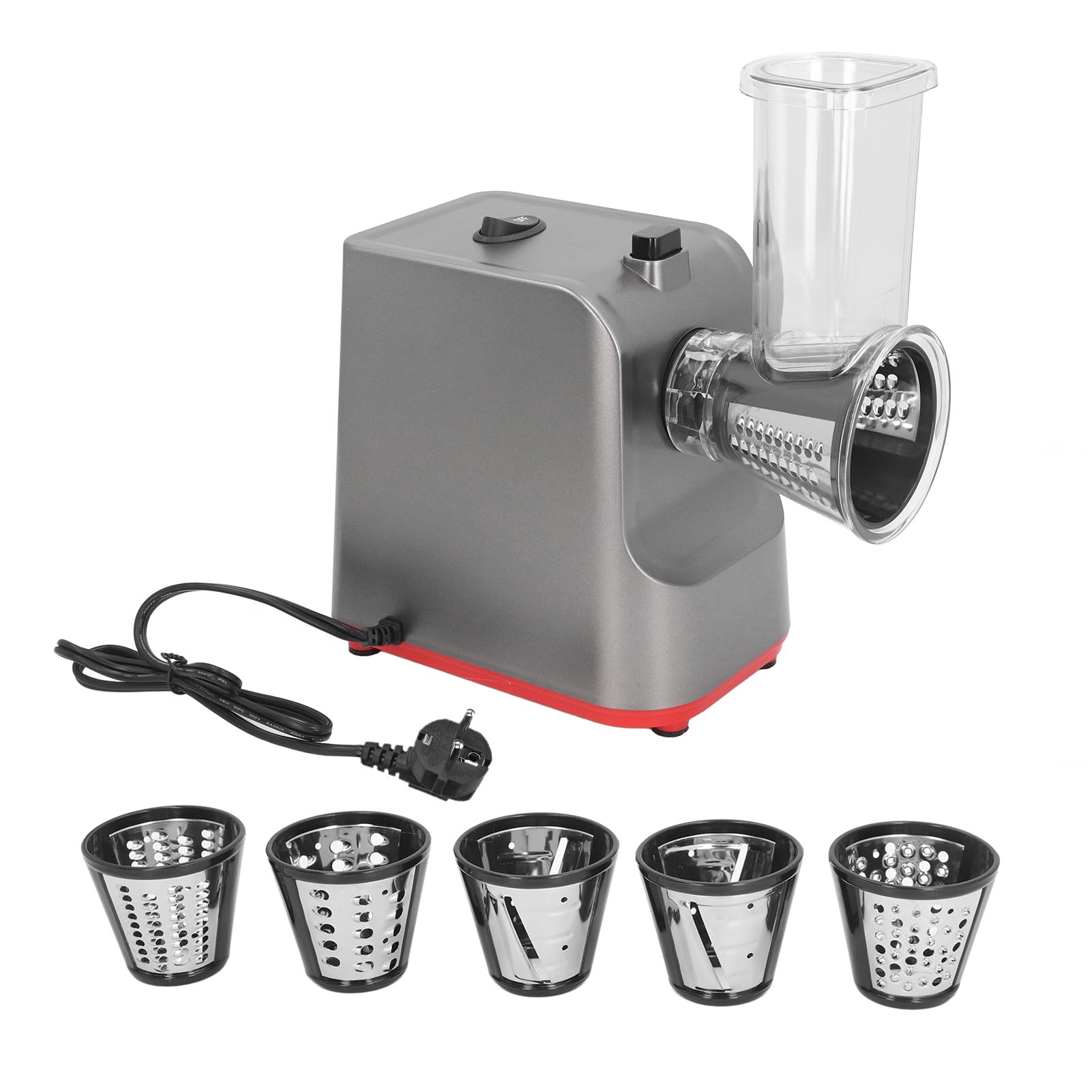 - [Krachtige motor]: Ervaar het moeiteloos raspen van harde kazen, fruit en groenten met een krachtige elektromotor van 250 W.