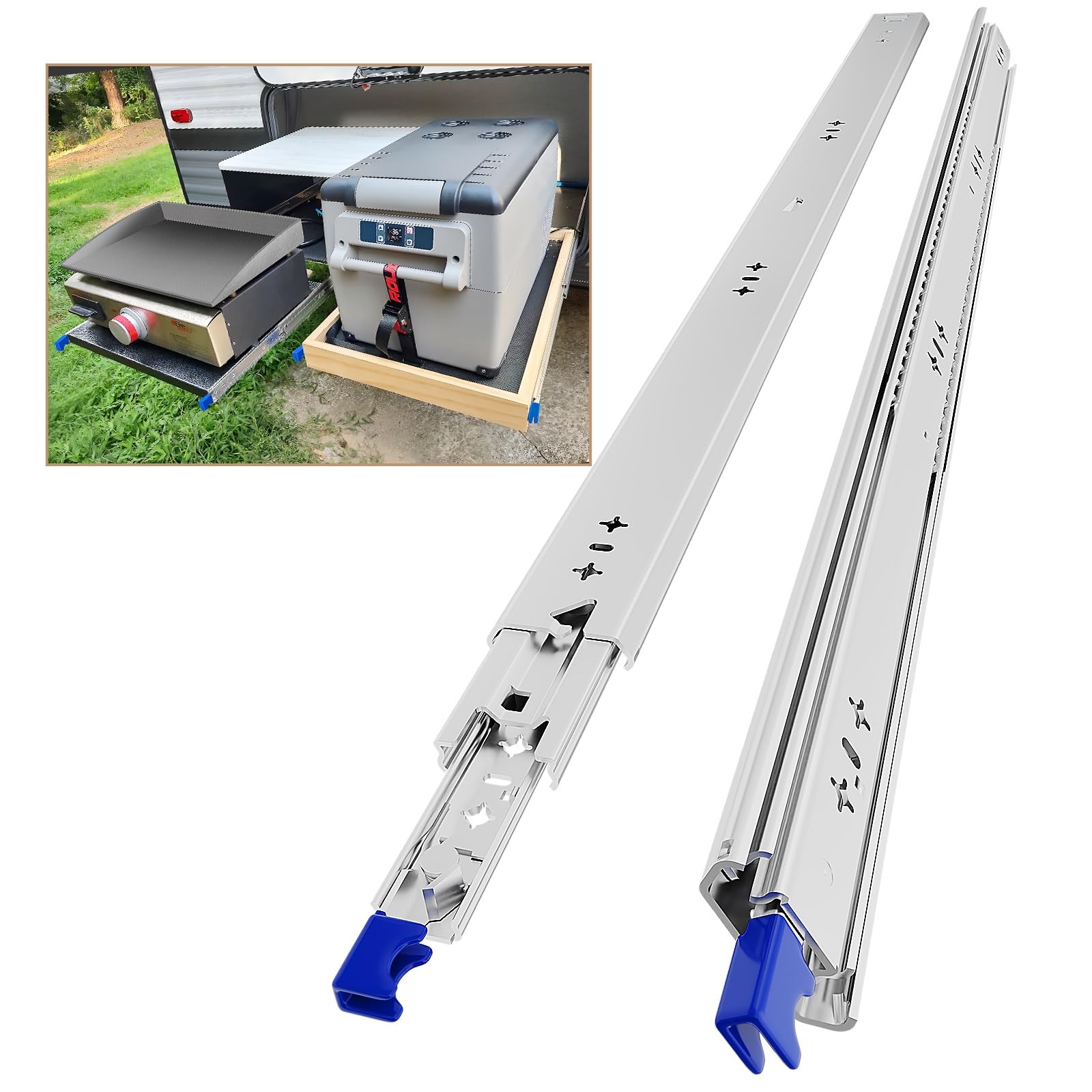 - Staccabile e liscio: quando si estende completamente, premere e tenere premuto il manico blu e tirare fuori per completare la separazione, facile da installare. Il cuscino in gomma, evita di spingere e tirare le collisioni durante l'uso, doppie file di sfere in acciaio solido rendono il cassetto aperto più liscio e silenzioso.