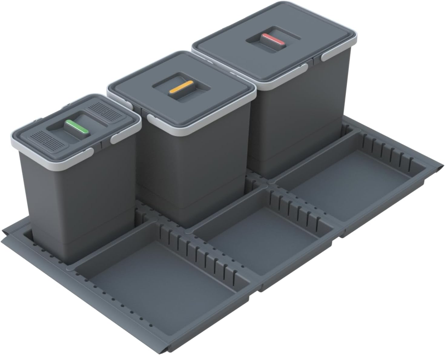- Offre una capacità totale di 45 litri, suddivisa in tre scomparti da 15 litri ciascuno.