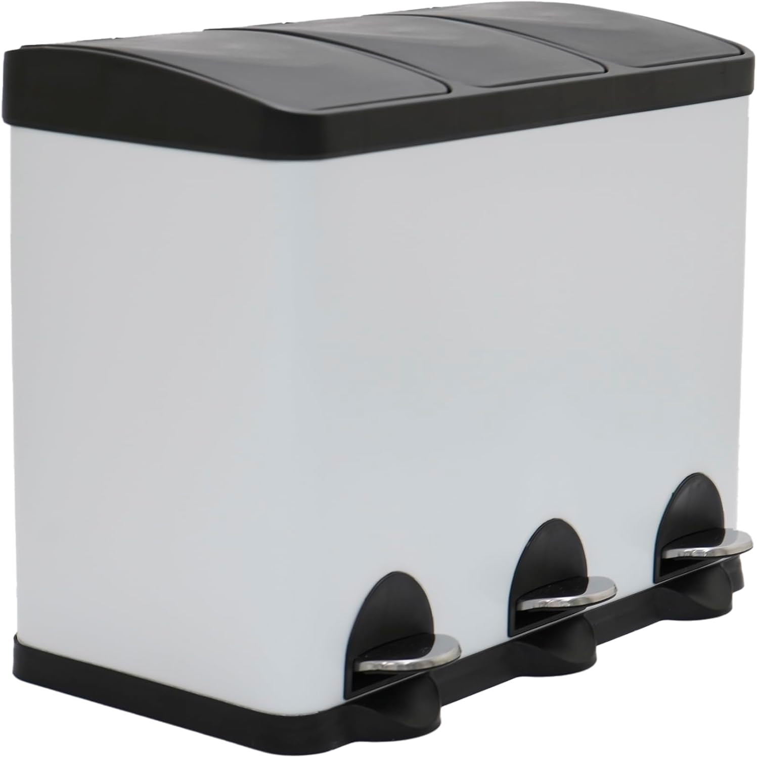 - SECCHIO DELLA SPAZZATURA TRIPLO: Questo secchio della spazzatura triplo è una soluzione innovativa per la classificazione e il riciclaggio dei rifiuti domestici. Con 3 scomparti, pedali di apertura e coperchi ermetici indipendenti, avrai un'esperienza di riciclaggio comoda e senza cattivi odori.