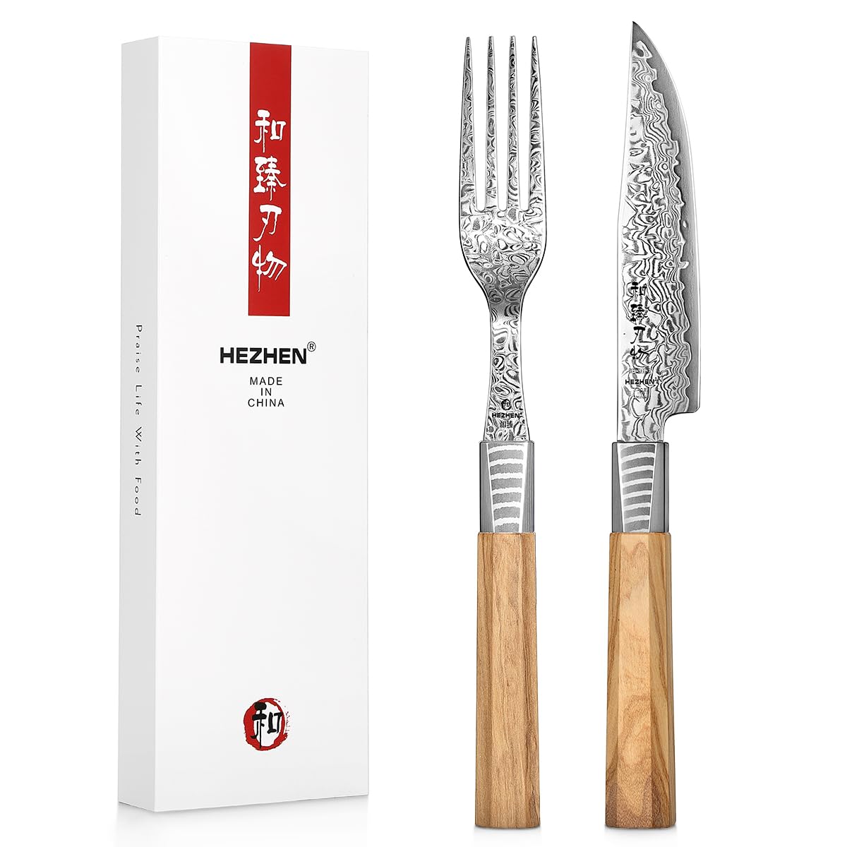 Hezhen Set Coltello e Forchetta Bistecca Damasco