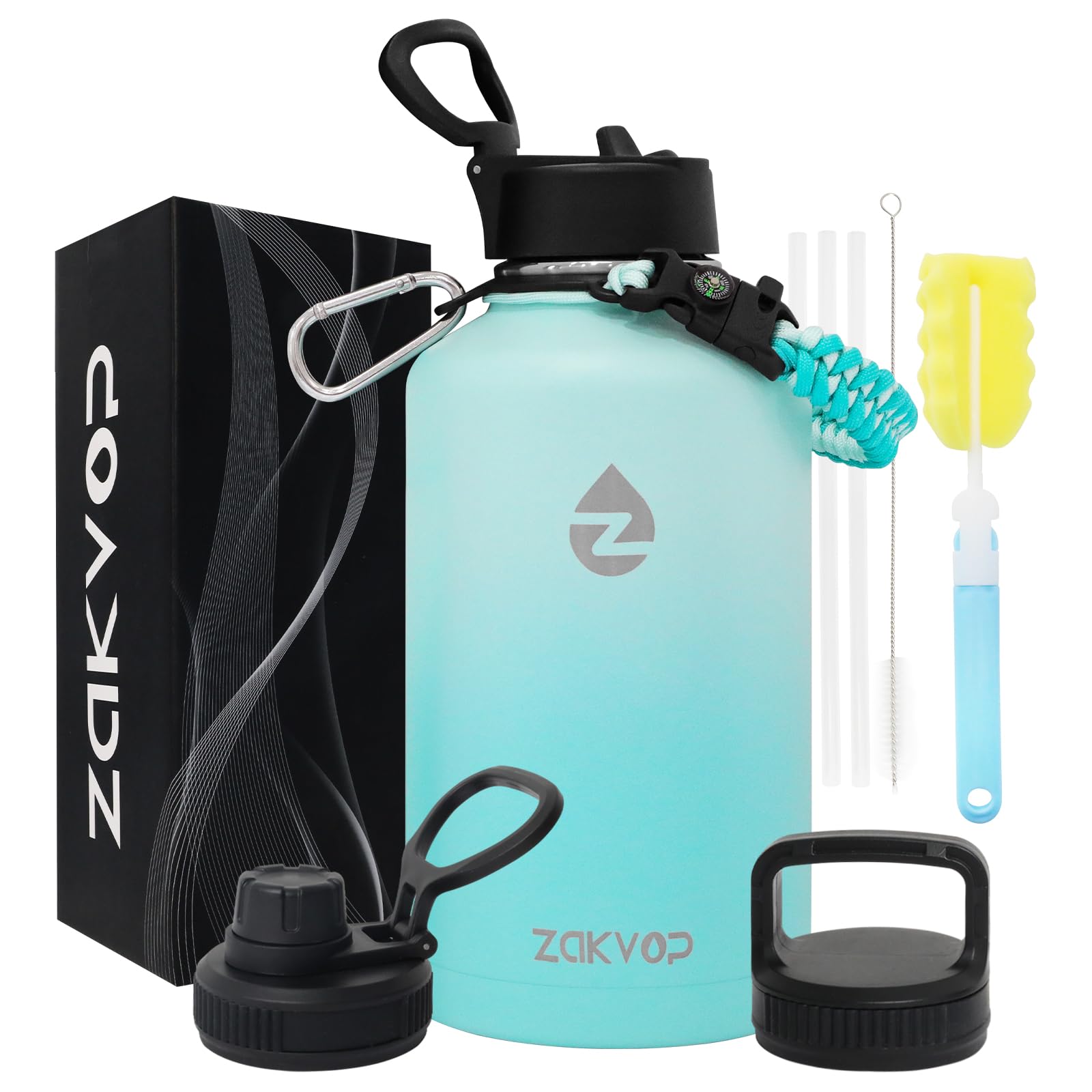 - 【Maniglia Paracord】 Una maniglia robusta e multifunzionale è progettata appositamente per questa borraccia palestra. Ogni manico corrisponde al colore della bottiglia che rende l'aspetto armonioso. La maniglia è integrata con una piccola bussola e un robusto moschettone per ulteriore divertimento e assistenza. La maniglia è installata all'interno della confezione per comodità.