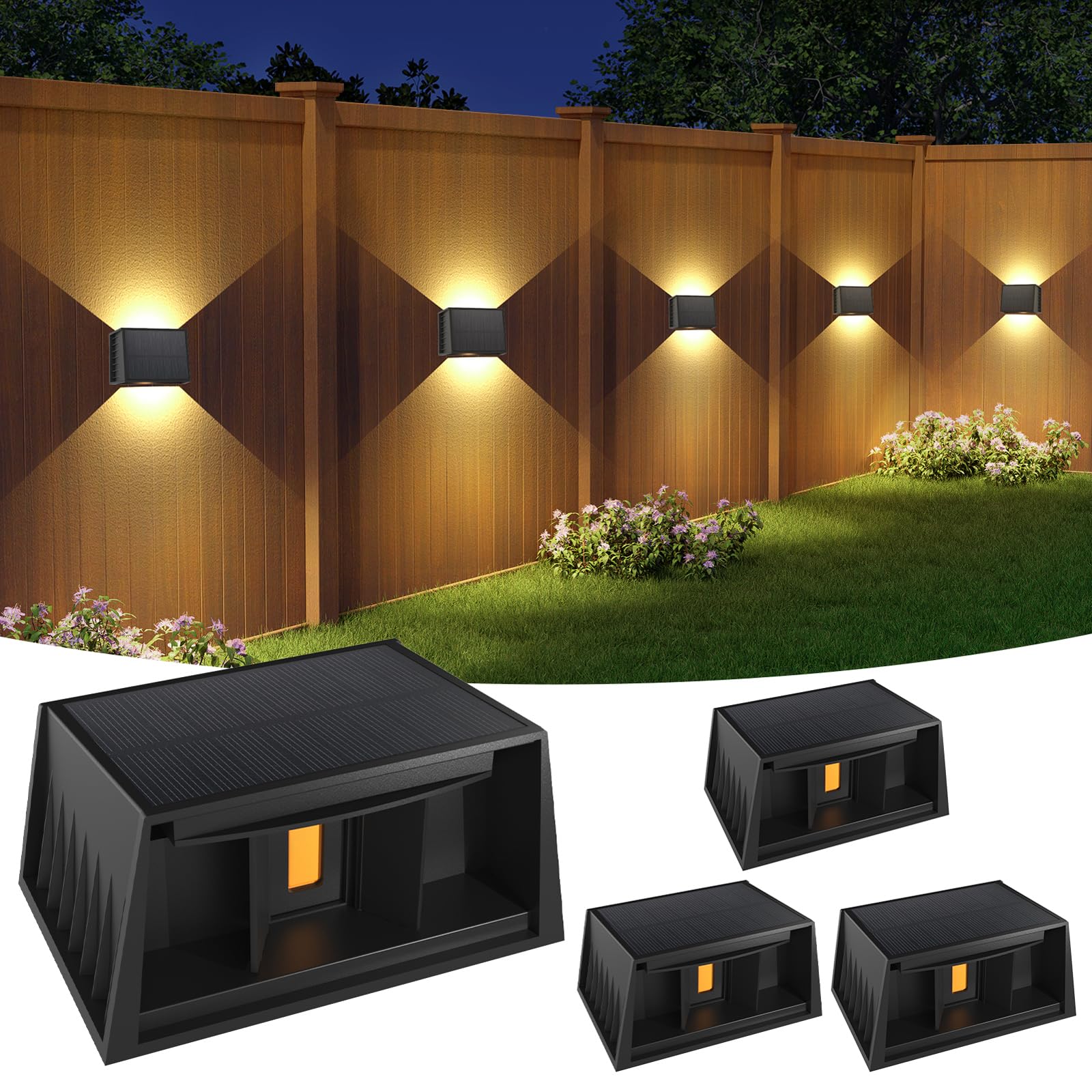 - ★【Funzione crepuscolare automatica】dotate di un pannello solare ad alta efficienza, le nostre Applique da Esterno si ricaricano completamente in 6-8 ore di luce solare e offrono un'illuminazione continua per 8-10 ore di notte. Nessun costo di cablaggio o elettricità: solo illuminazione affidabile ed ecologica per recinzioni, scale, cancelli e muri.