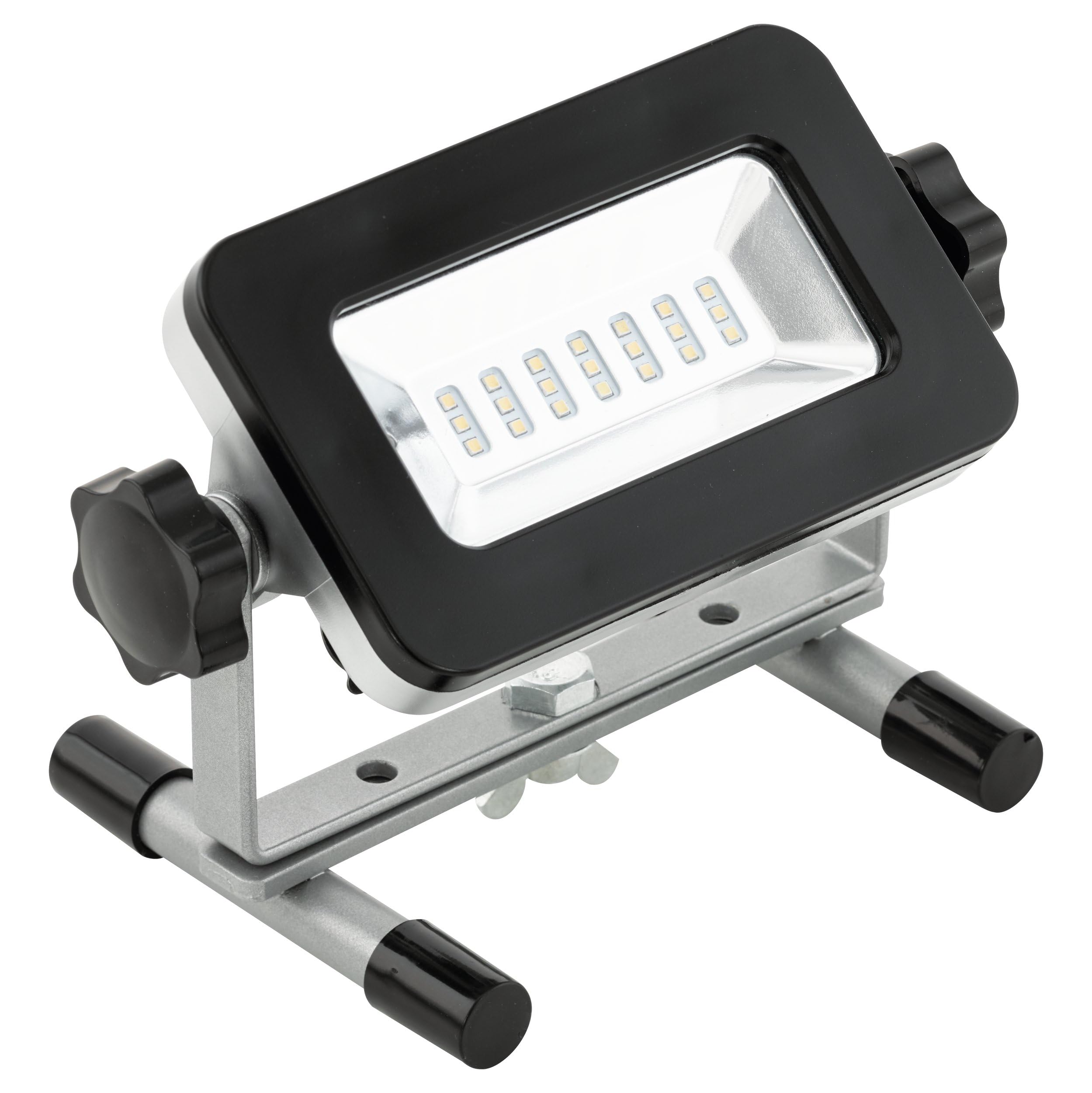 - Il faretto da lavoro compatto ha una struttura in alluminio con elementi in plastica nera e una testa dell'apparecchio rettangolare con angoli arrotondati, ed è ideale come illuminazione da lavoro per il fai da te