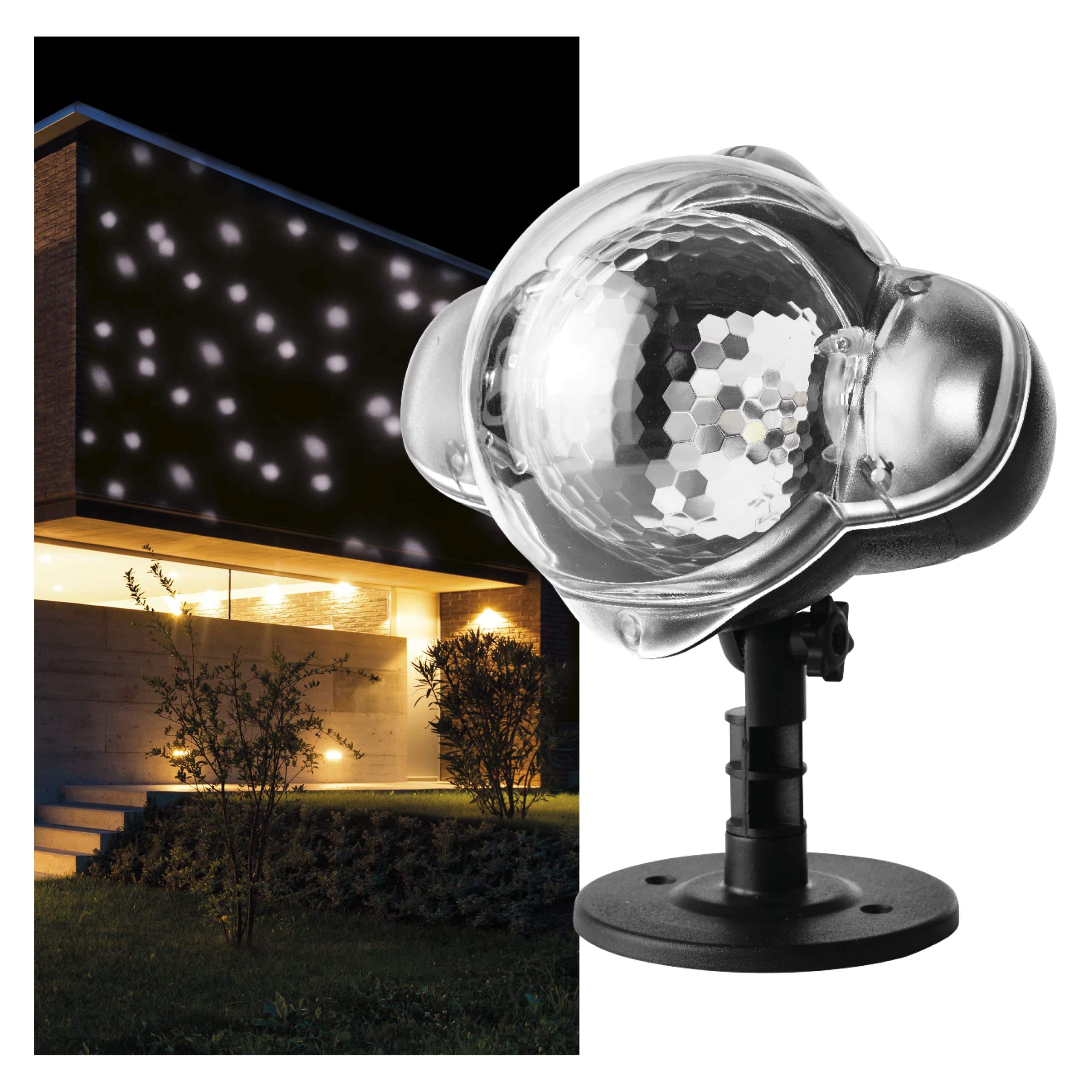 - Il proiettore invernale EMOS è equipaggiato con diodi LED ad alta efficienza energetica (4,0 W), che assicurano un funzionamento sicuro e una lunga durata di 10.000 ore. Proietta suggestivi motivi di neve volante su diverse superfici come muri, facciate, siepi o alberi.