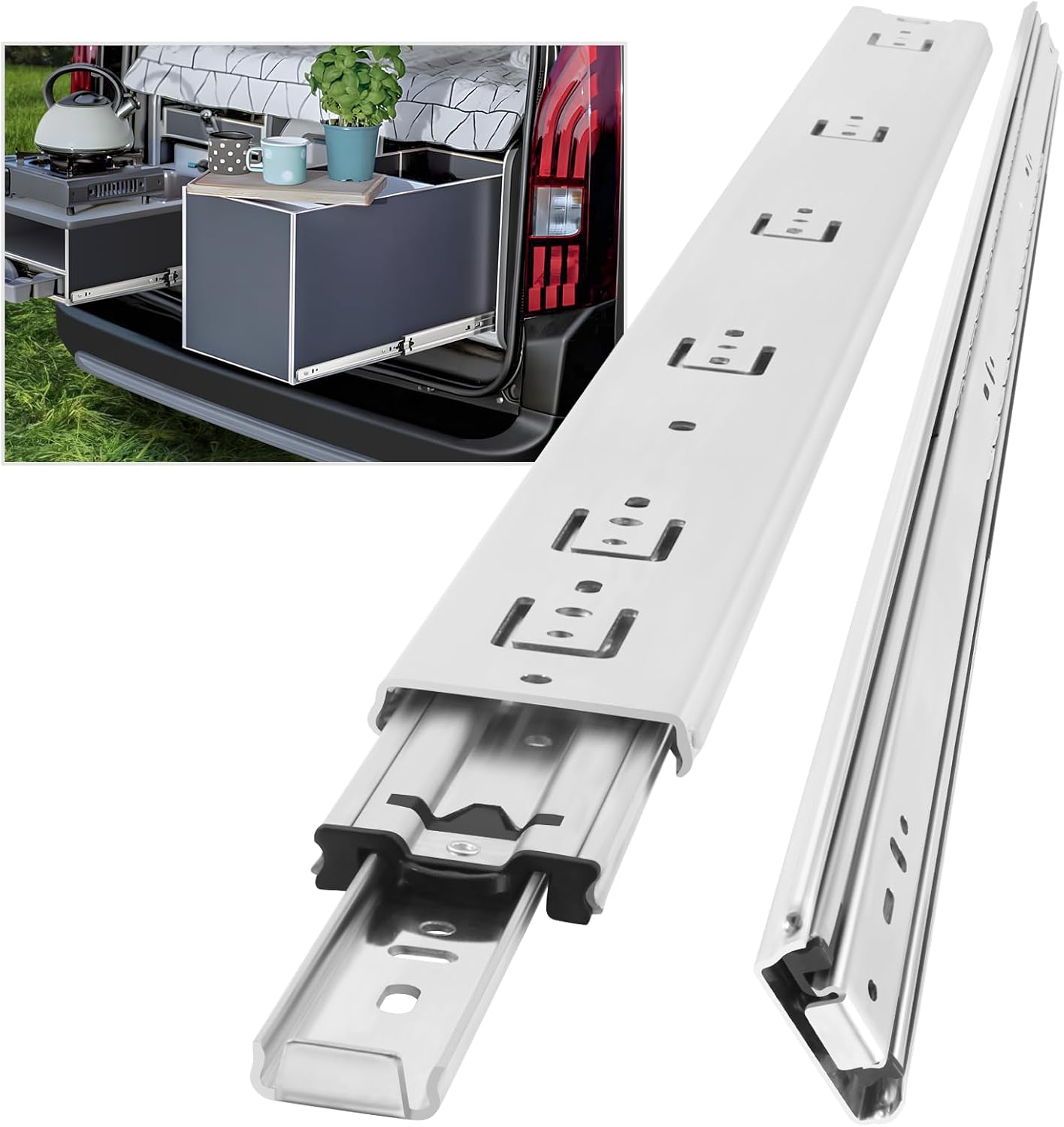 - Realizzate in acciaio ispessito ad alta densità da 1,5 mm, queste guide a estrazione totale sono robuste e stabili, offrendo una migliore capacità portante; la capacità di carico aumenta con la diminuzione della lunghezza delle guide.
