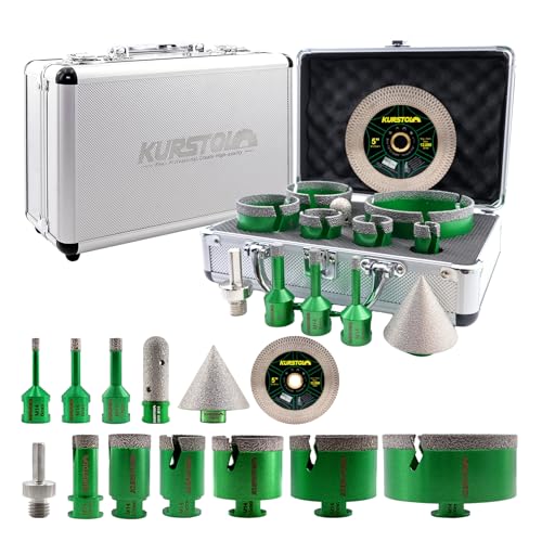 - 【Specifiche】 13 pezzi: 9 pezzi punte diamantate gres porcellanato: 6/8/10/20/32/35/55/68/100mm, 1 pezzo 20mm Fresa Diamantata, 1 pezzo punte smusso diamantata 50mm, 1 pezzo 125mm disco diamantato, 1 pezzo adattatore (da codolo triangolare a filetto M14)