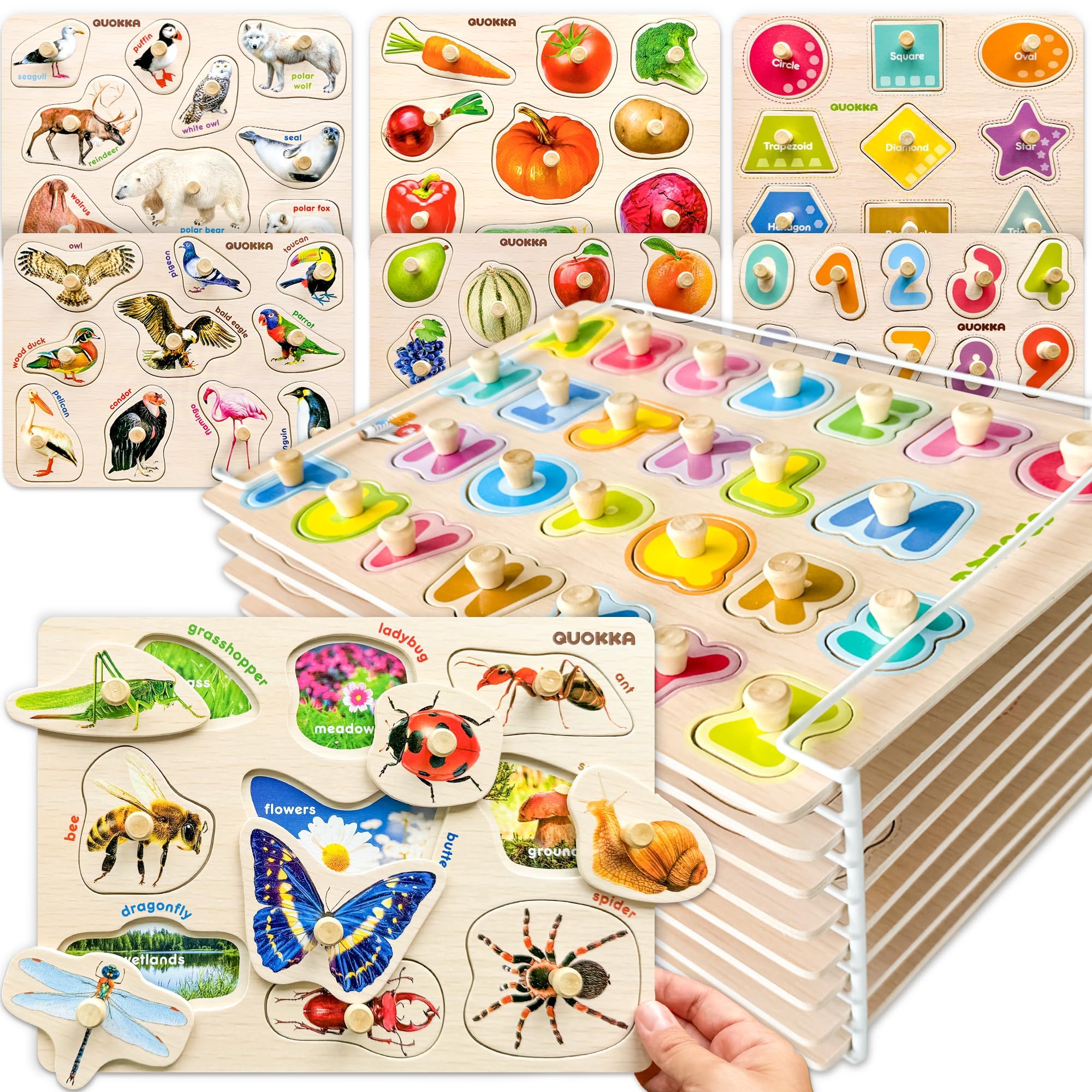 - Questo set di 8 puzzle in legno è un regalo eccellente per bambini e bambine dai 2 anni in su, con ogni puzzle che misura 25 x 19 cm e presenta 9 immagini educative su entrambi i lati, come insetti, uccelli, automobili, frutta e verdura, aumentando il valore di apprendimento del gioco.