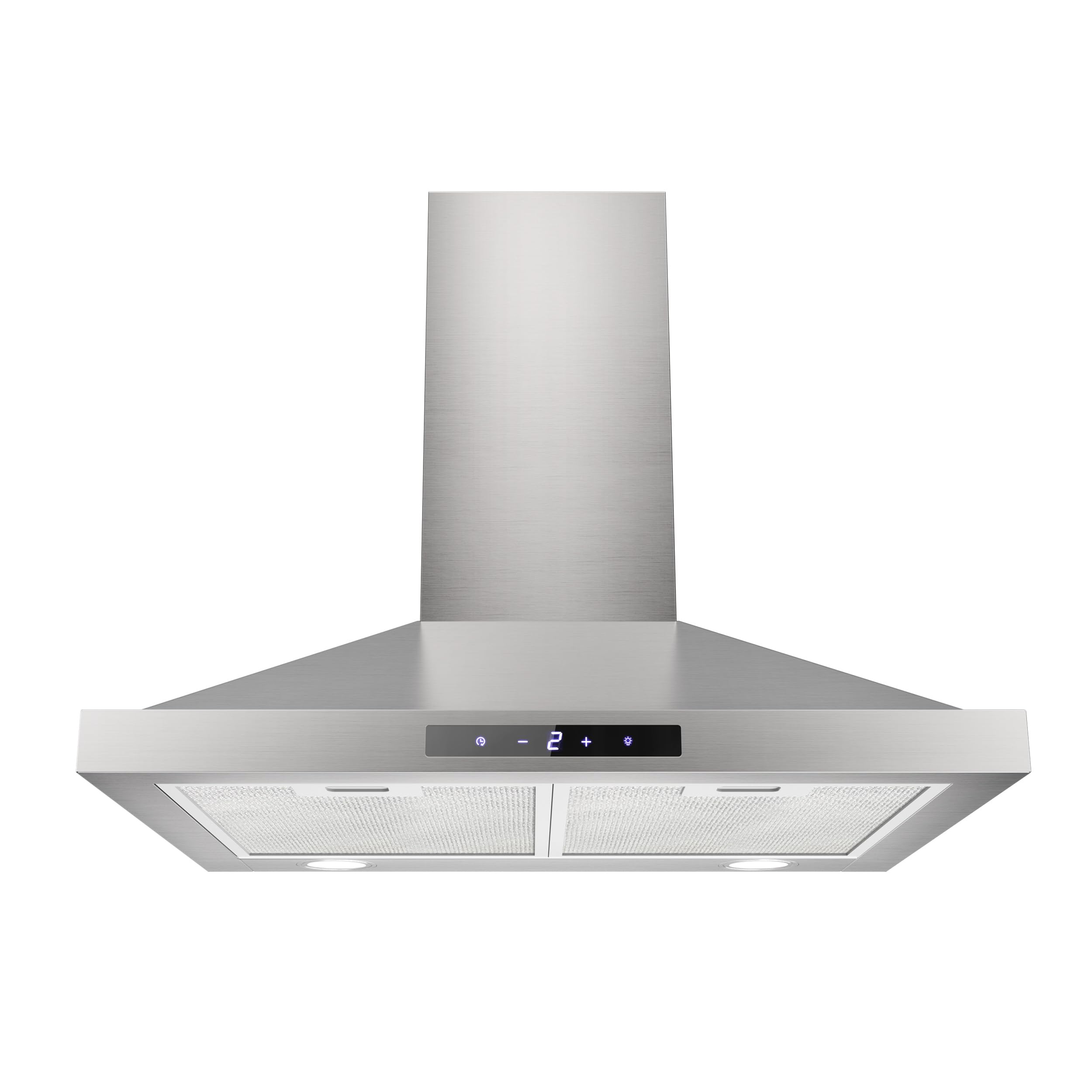 - Il pannello di controllo touch screen consente di selezionare tra 3 diverse velocità e include una funzione di spegnimento ritardato, che permette di impostare l'arresto automatico della cappa dopo aver terminato la cottura, assicurando l'eliminazione completa dei fumi residui.