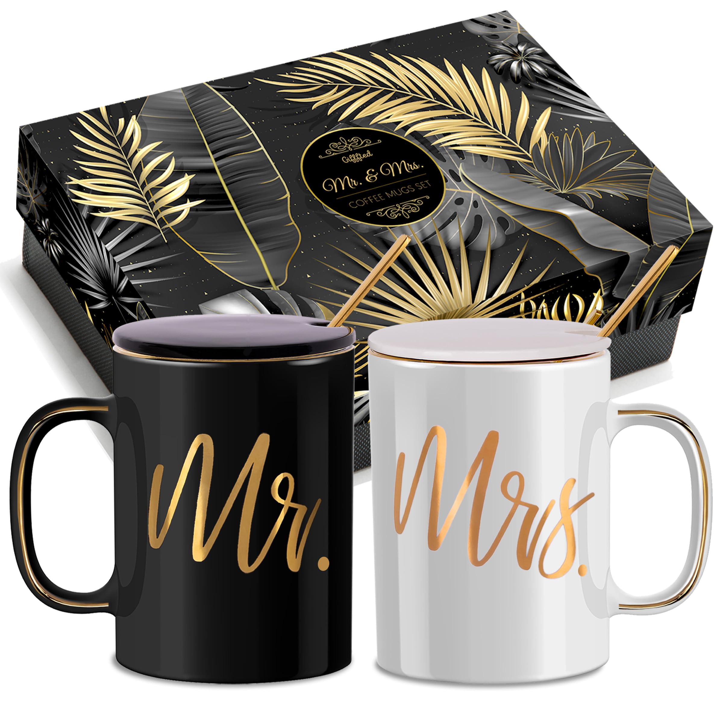 - Questo set di tazze in ceramica Mr. e Mrs. è un regalo elegante e romantico, perfetto per rendere le mattine degli sposi più piacevoli. Viene fornito in una confezione lussuosa che non richiede ulteriore incarto.
