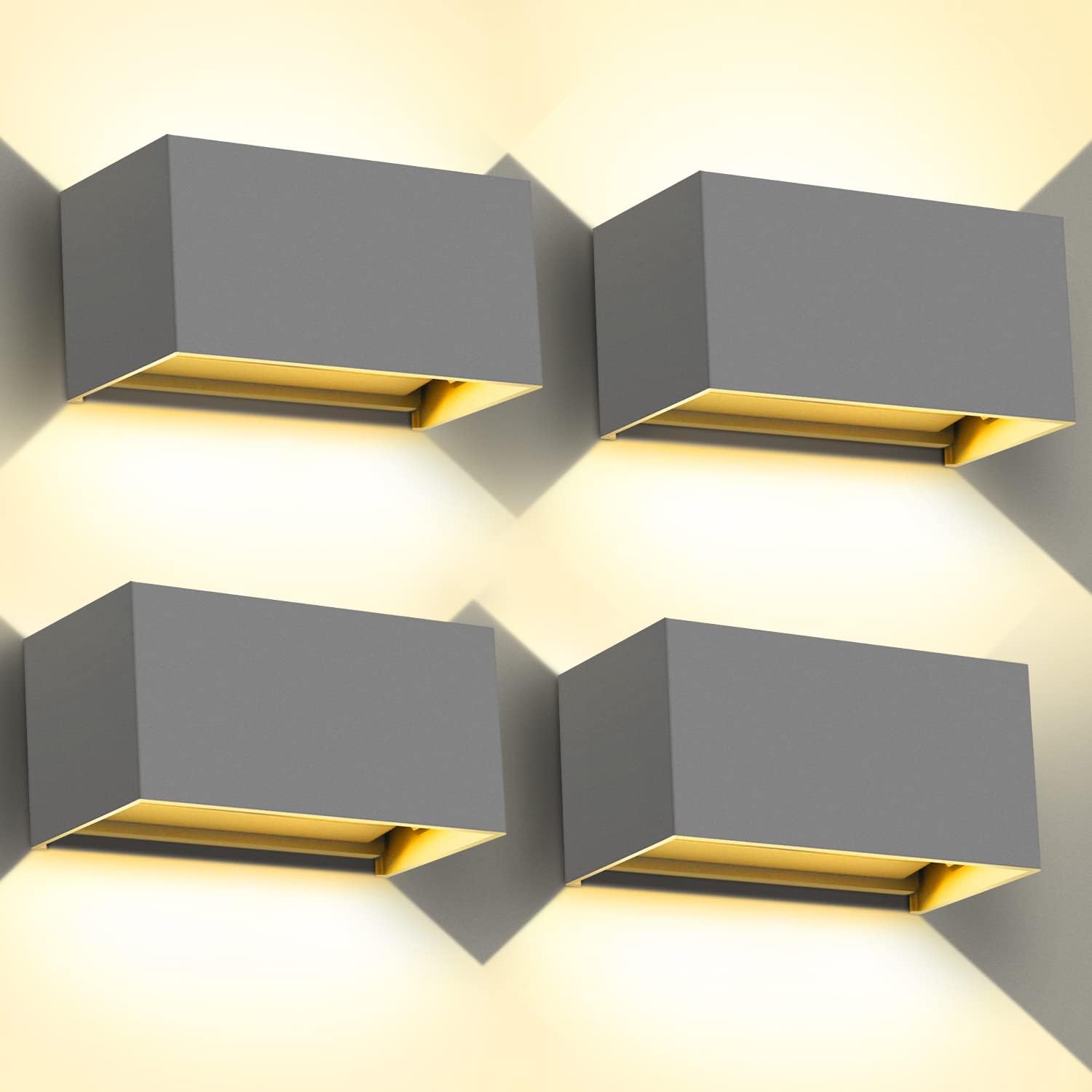 Kingwen 4 Pezzi Applique da Parete 20W IP65 Grigio