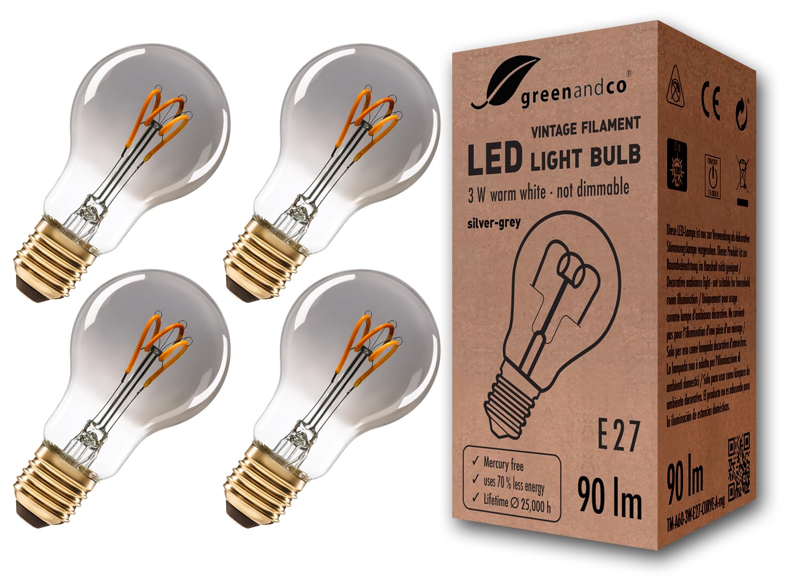 Greenandco Lampadina Filamento LED Vintage E27 A60 (4 Pezzi)