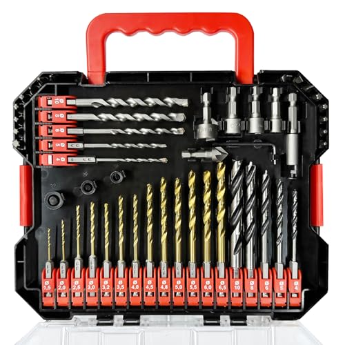 - Scatola di immagazzinaggio trasparente: il tempo è denaro: tutti i buoni artigiani lo sanno. Con questo set universale non dovrai più cercare gli accessori giusti. Nella robusta cassetta degli attrezzi con maniglia e chiusura di sicurezza, ogni accessorio per trapano e vite ha il proprio posto contrassegnato. Ciò consente di risparmiare tempo durante il cambio degli utensili e rende superfluo la strada per il prossimo negozio di ferramenta. Tempo aggiuntivo che puoi utilizzare per il lavoro effettivo.