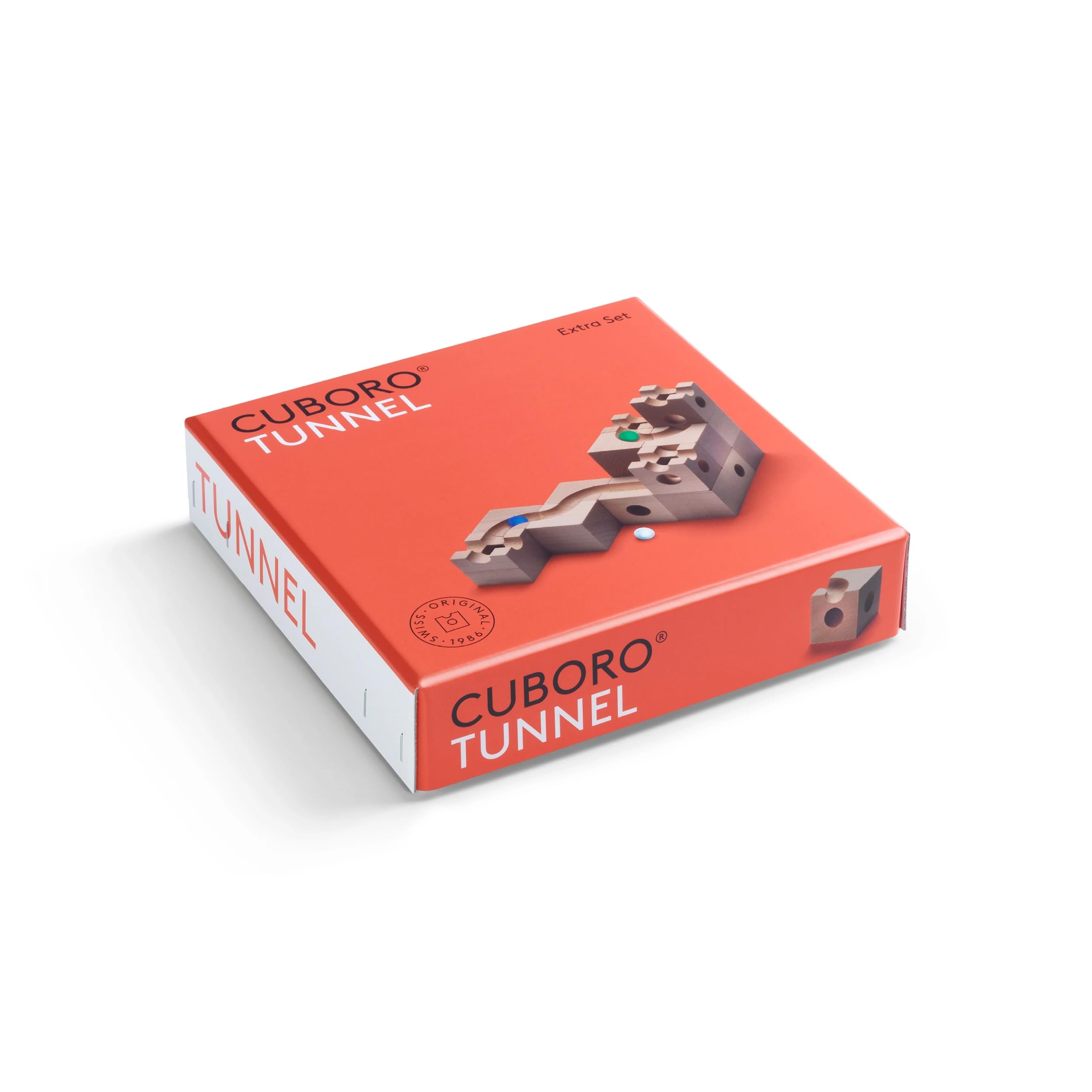 - Set extra di elementi per piste di biglie Cuboro, specificamente progettato per integrare tunnel nelle costruzioni esistenti.