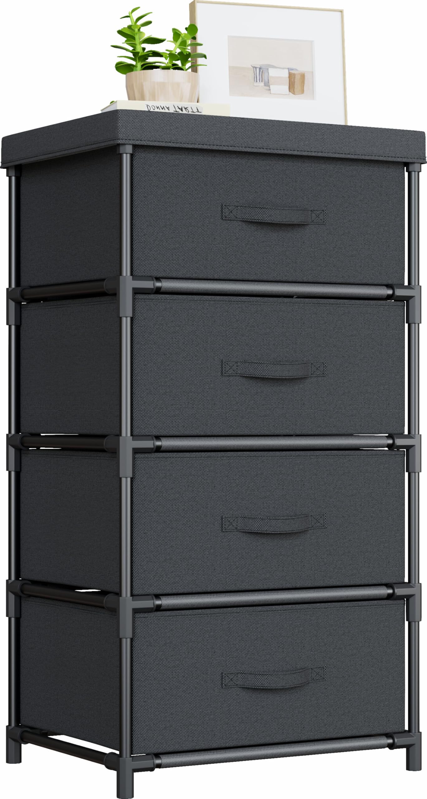 Wangirl Cassettiera in Tessuto 4 Cassetti, Nero