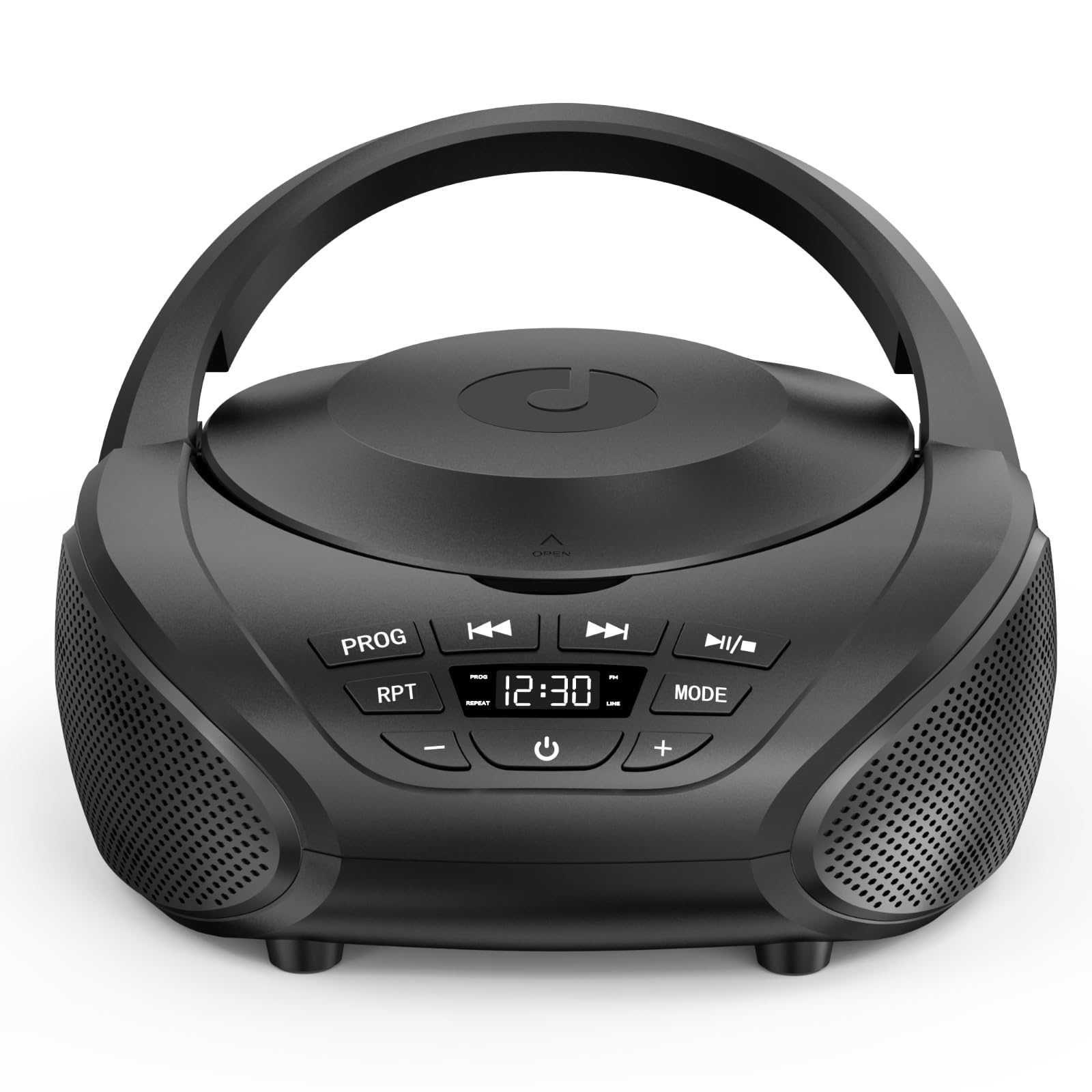 - Questo boombox CD portatile multifunzione integra un lettore CD top-loading, un display LCD, una radio FM e un ingresso AUX per dispositivi esterni; supporta la riproduzione programmata (PROG), la ripetizione di singole o tutte le tracce e la riproduzione di playlist, ed è ideale per CD didattici, audiolibri o musica di sottofondo, con una funzione di memoria che riprende la riproduzione dal punto di interruzione.