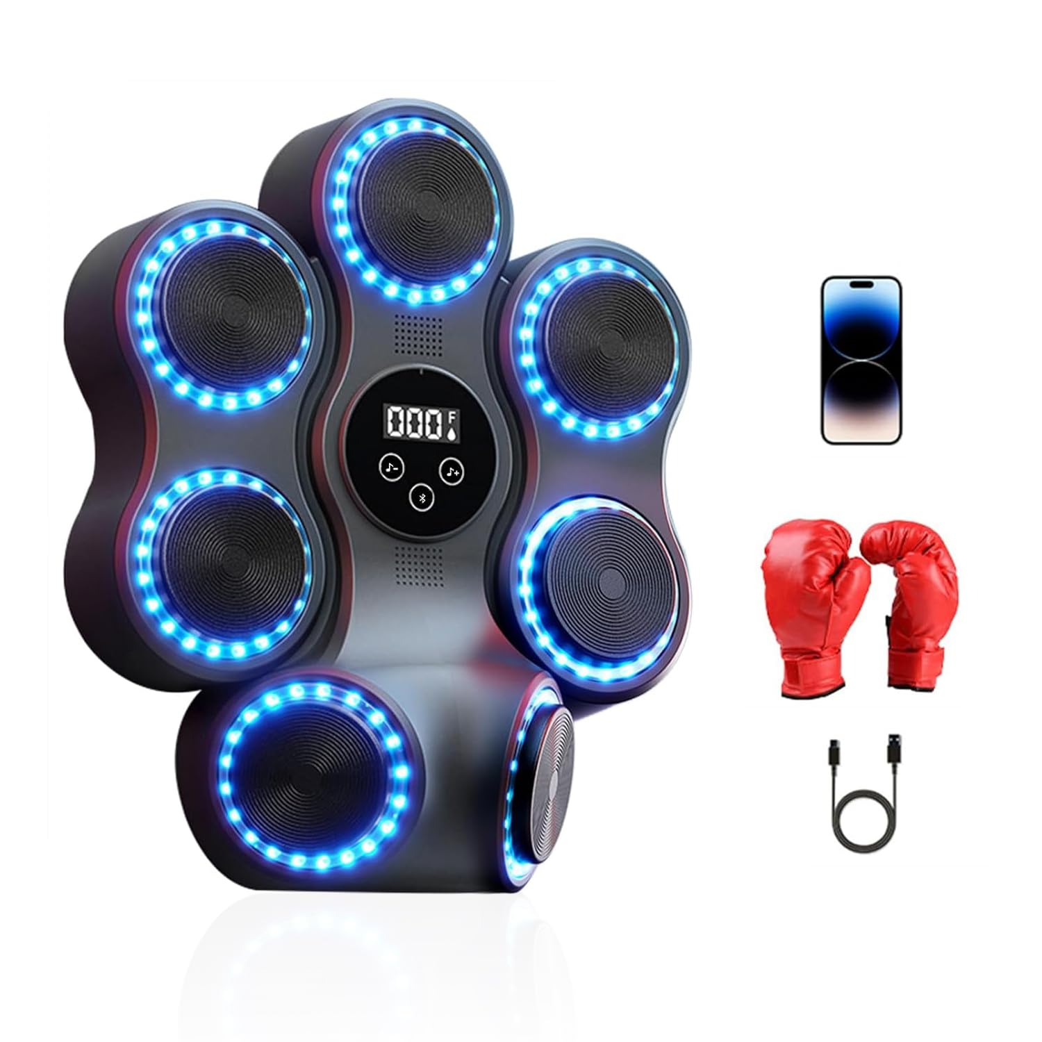 - La Box Musicale Pugile Intelligente Bluetooth Rende l'Allenamento Divertente : Dotata di altoparlanti stereo integrati e fantastici effetti di illuminazione a LED, puoi ascoltare la tua musica preferita tramite Bluetooth e poi colpire a ritmo di musica e luci! Combinare udito e vista non solo migliora la velocità di reazione e la coordinazione, ma rende anche l'allenamento interessante e motivante