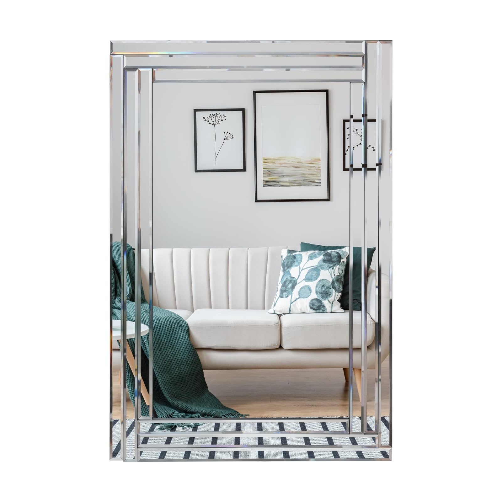- Design moderno: lo specchio rettangolare Muzilife è una perfetta esposizione d'arte per la tua casa. La forma unica e le cornici sottili conferiscono una sensazione luminosa e moderna ad ogni stanza. Un design senza tempo lo rende adatto come bella decorazione in qualsiasi angolo