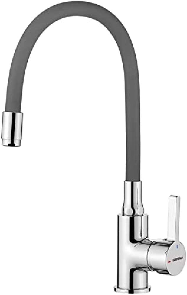 - Il beccuccio flessibile di colore grigio, dal design elegante, è un complemento perfetto per una cucina moderna.