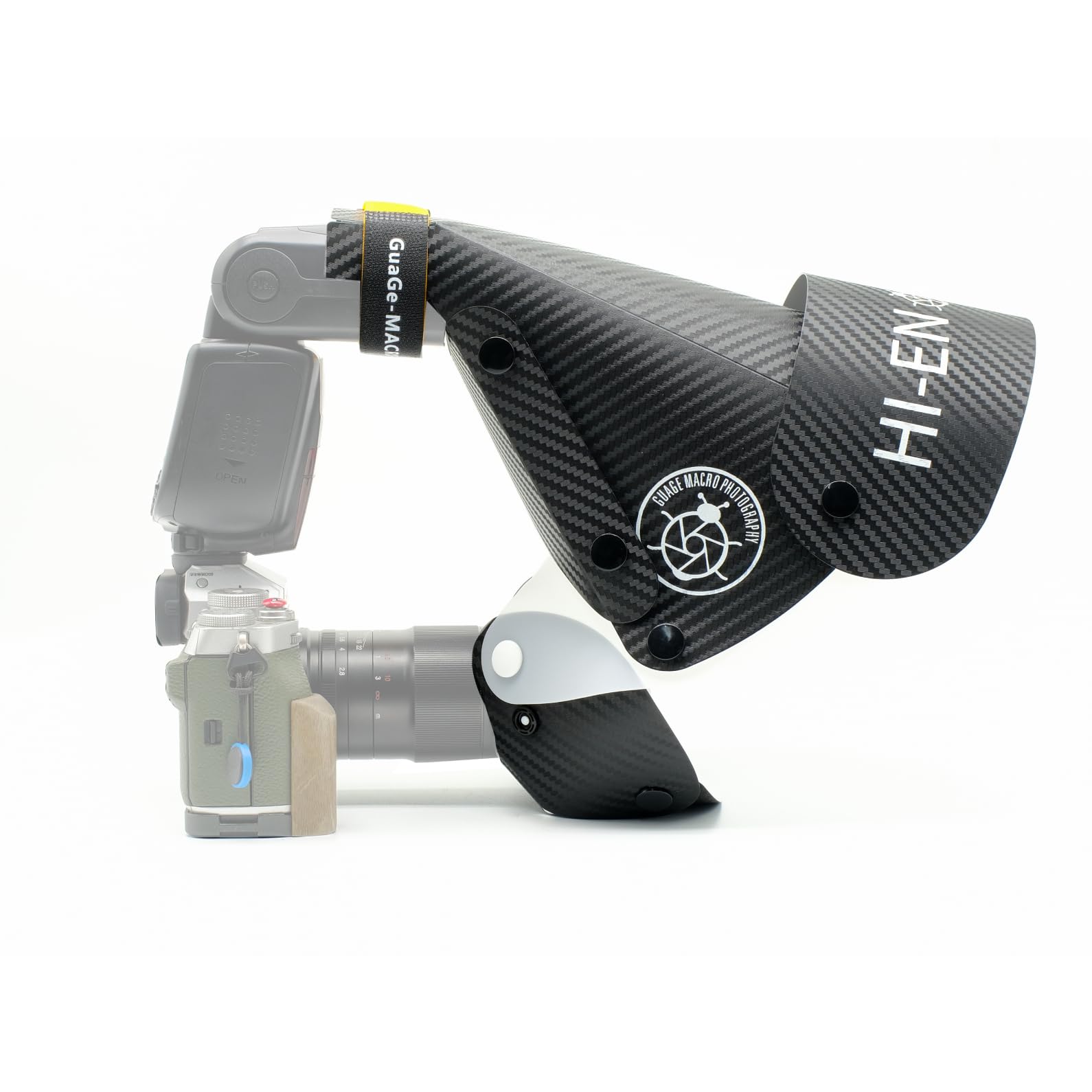 - Design migliorato per una maggiore facilità d'uso: il diffusore per flash macro Gua'ge Mini Size II dispone di un nuovo sistema di cinghie di fissaggio che sostituisce le chiusure in velcro e consente un fissaggio più sicuro, semplice ed efficiente. Le dimensioni migliorate (240 x 190 mm) lo rendono ancora più compatto e pratico rispetto alla versione precedente.