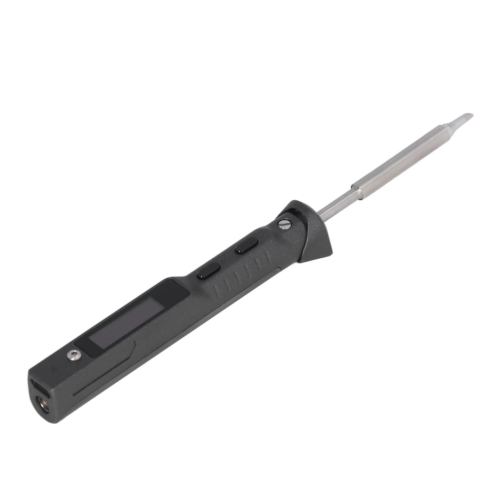- Il saldatore digitale è controllato da due pulsanti per la regolazione dei parametri, con un intervallo di temperatura impostabile tra 100-400 °C (212 °F - 752 °F), e un display OLED per una lettura chiara dei dati.