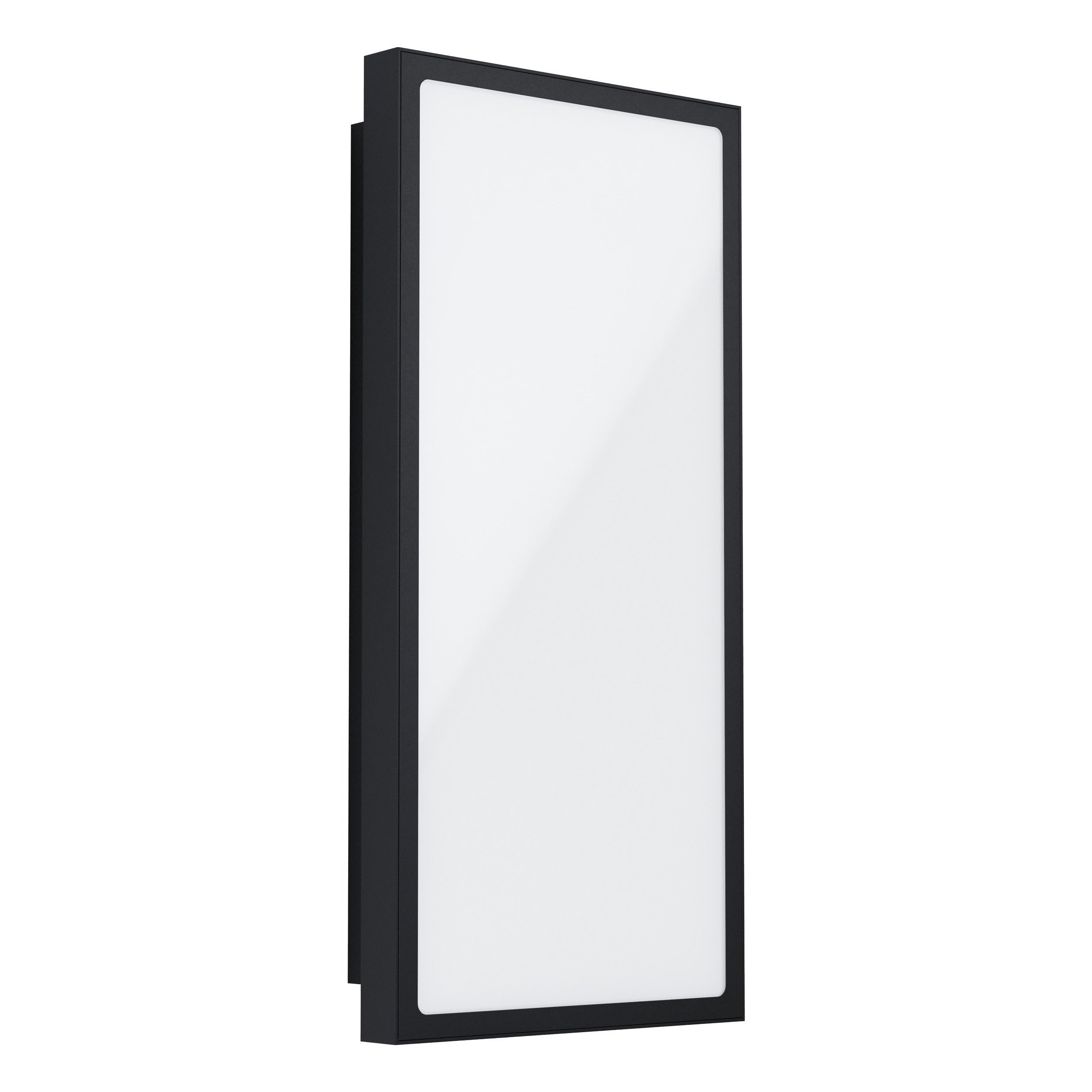 - La lampada da parete per esterni presenta un design a pannello LED, realizzata in acciaio zincato nero con superfici luminose in plastica bianca.